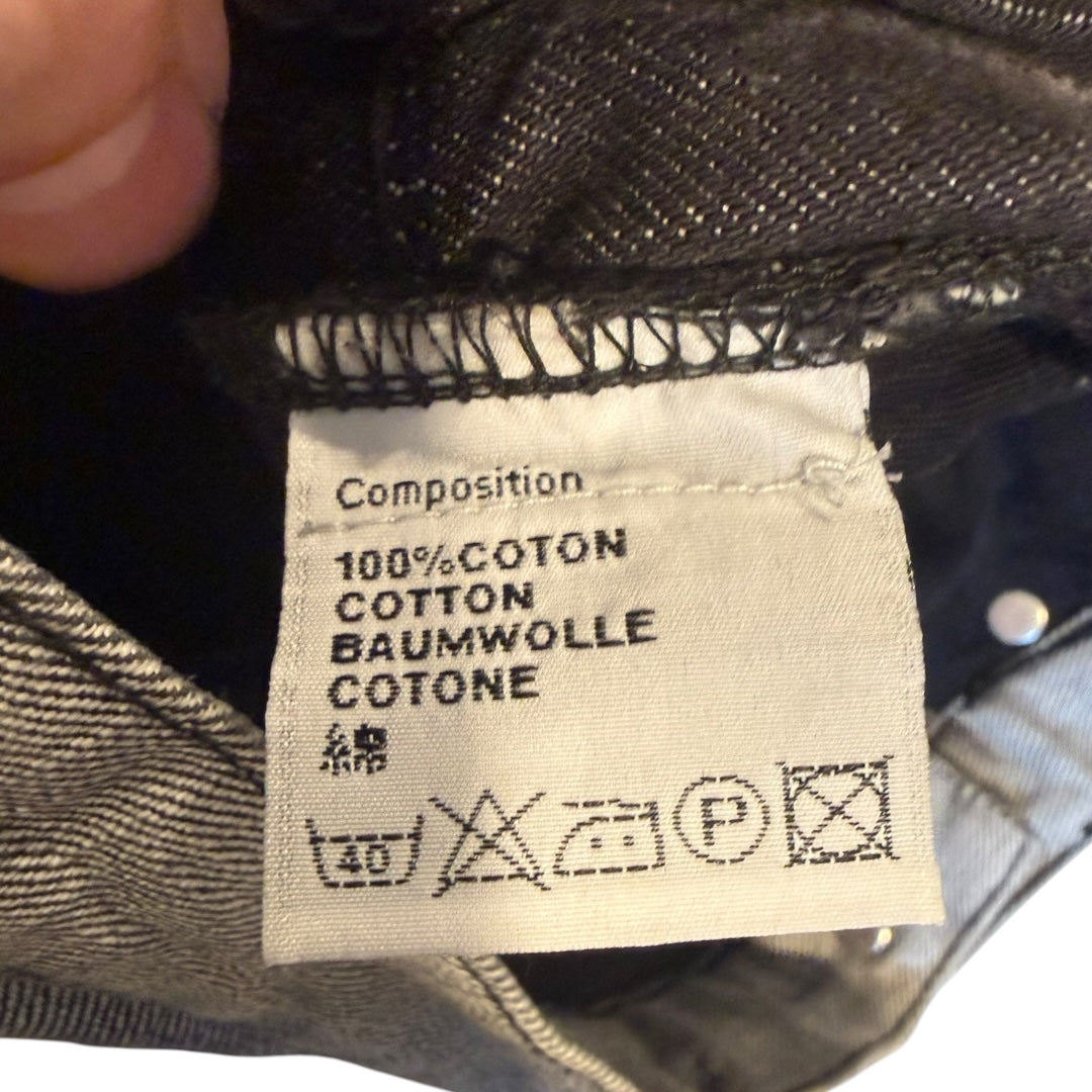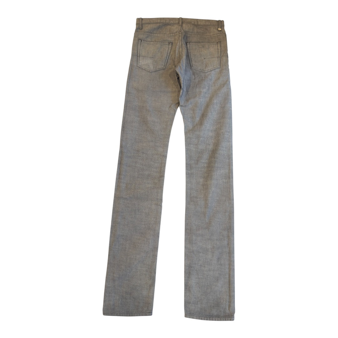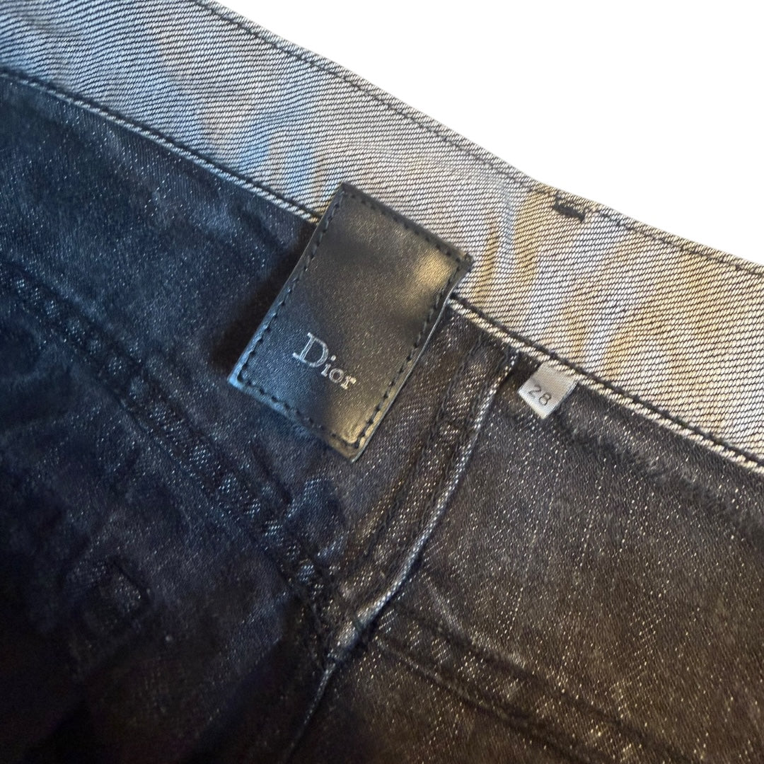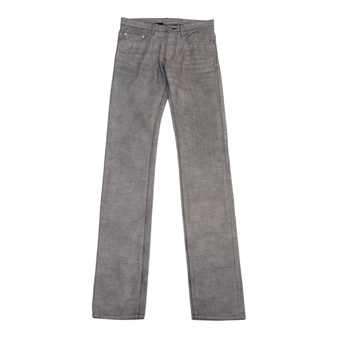 Dior Homme Autumn 2008 Reverse-Black Raw Japanese Denim, tagged size 28 measures 29.75 waist 9.25 rise 11.75 back rise 36.5 inseam (unaltered). In excellent condition with no noticeable flaws. This pair has been crafted in Japan using a thick raw denim that utilizes a black weft thread and white warp, the opposite of a traditional white-black denim, leaving the exterior of these pants a cool grey tone and their interior sharp black.