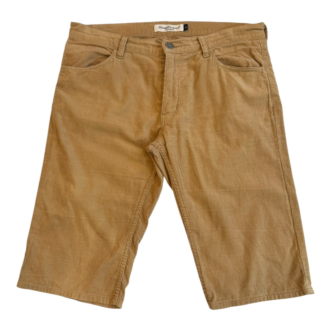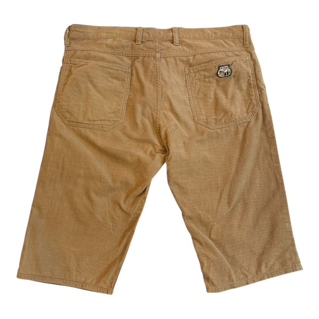 Undercover Spring 2008 Distressed Corduroy Shorts, tagged size 3 measures 32.5 waist 9.5 rise 12.25 back rise 13.5 inseam 8.25 leg opening. In good used condition with the exception of back bee logo patch, which is partially unglued.