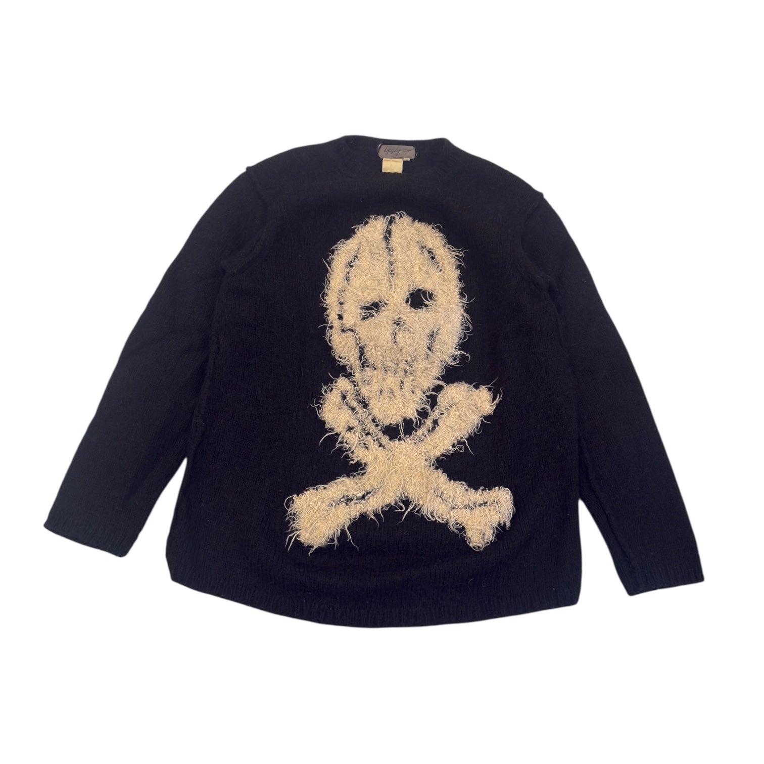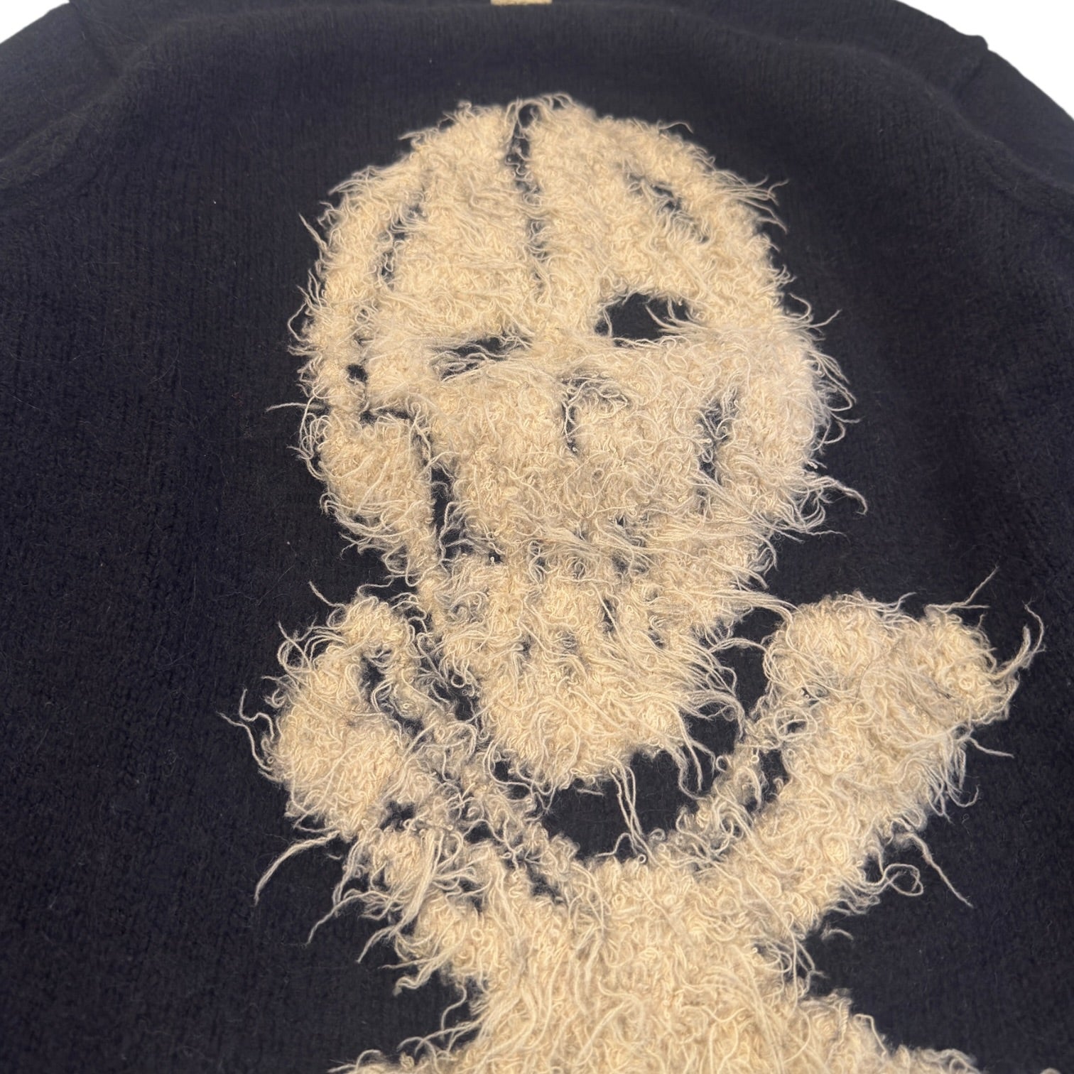 Yohji Yamamoto Pour Homme Autumn 1994 Skull Intarsia Mohair Knit, tagged size M measures 20.75 pit to pit 18 shoulders 23.5 sleeves 28 length. In good condition for age, some very minor pilling and tag fading.