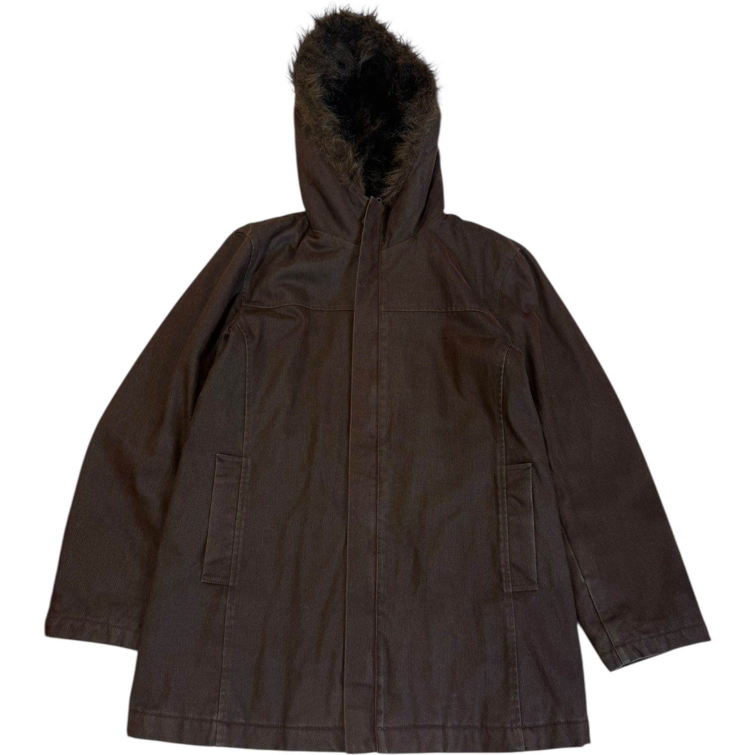 Tornado Mart Brushed Twill Padded Parka with Faux-Fur Hood in Dark Brown, fits like M measures 19 shoulders 22 pit to pit 24.5 sleeves 30 length