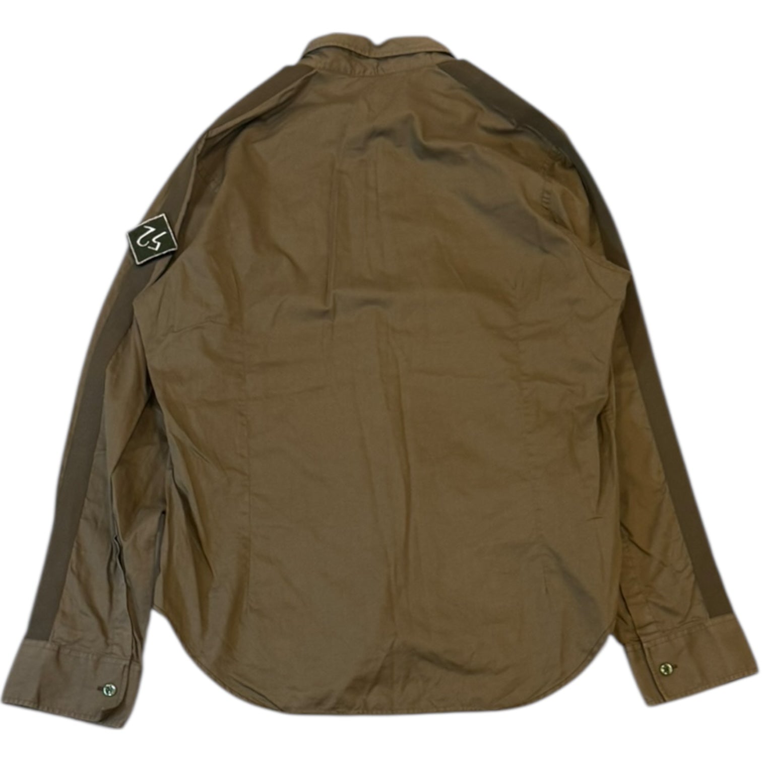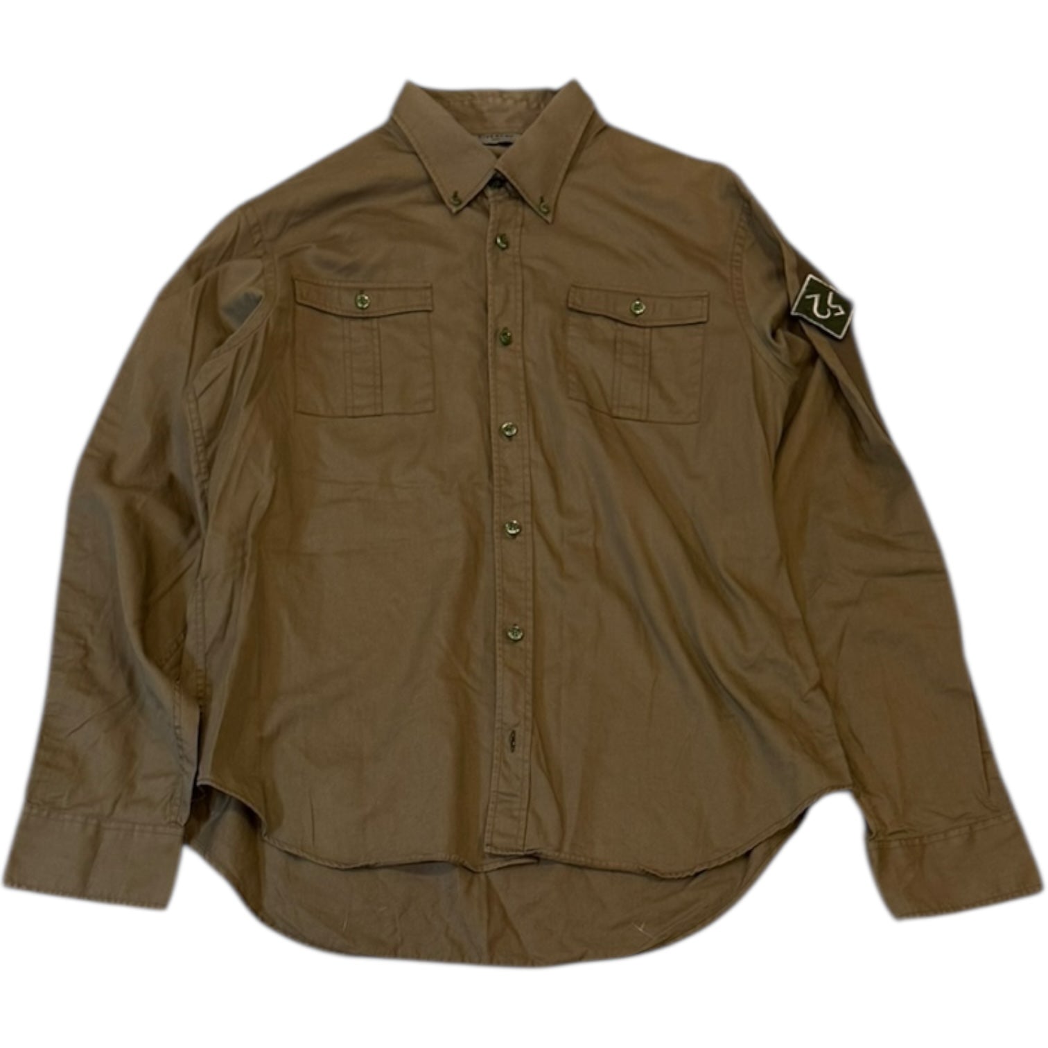 Givenchy side taped longsleeve button up shirt in olive green. Removable Velcro sleeve patch. tagged size 43 fits L-XL measures Pit to pit 21.5 sleeves 25.25 shoulders 17.5 length 30. Faded care tag, no other flaws