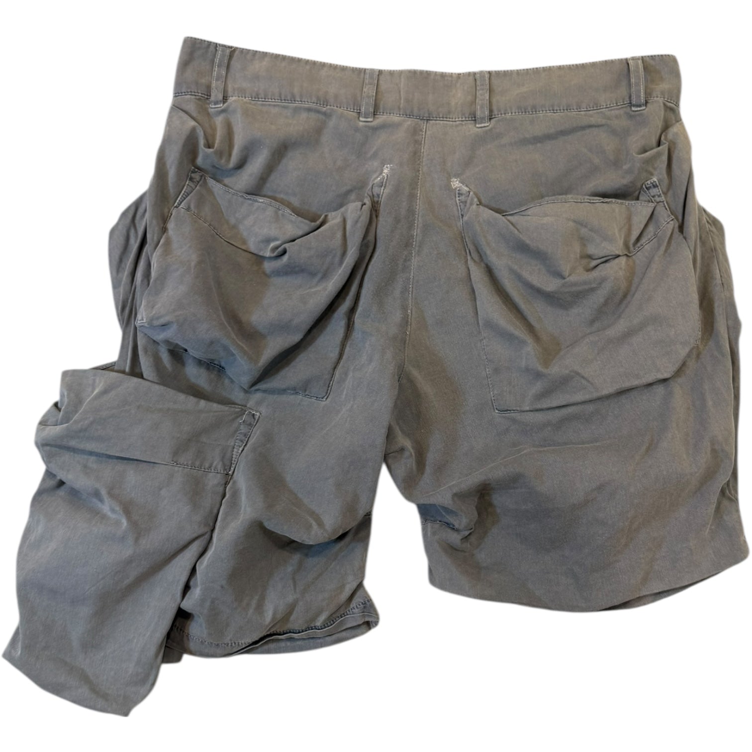Vivienne Westwood MAN London 3-D Pocket Shorts, rare size 52 / XL. This archive design from Vivienne Westwood is a reference to her Fall 1997 3D pocket Cargo Pants, one of the artist’s most iconic structural design. Seen here in a short variation, these soft blue 100% cotton shorts feature the same draping 3D cargo pockets and avante garde articulation. 52 / XL measures 34.5 waist 11 front rise 14 back rise 6 inseam 10.5 leg opening. In good used condition with minor repairs at back pockets not visible when worn.