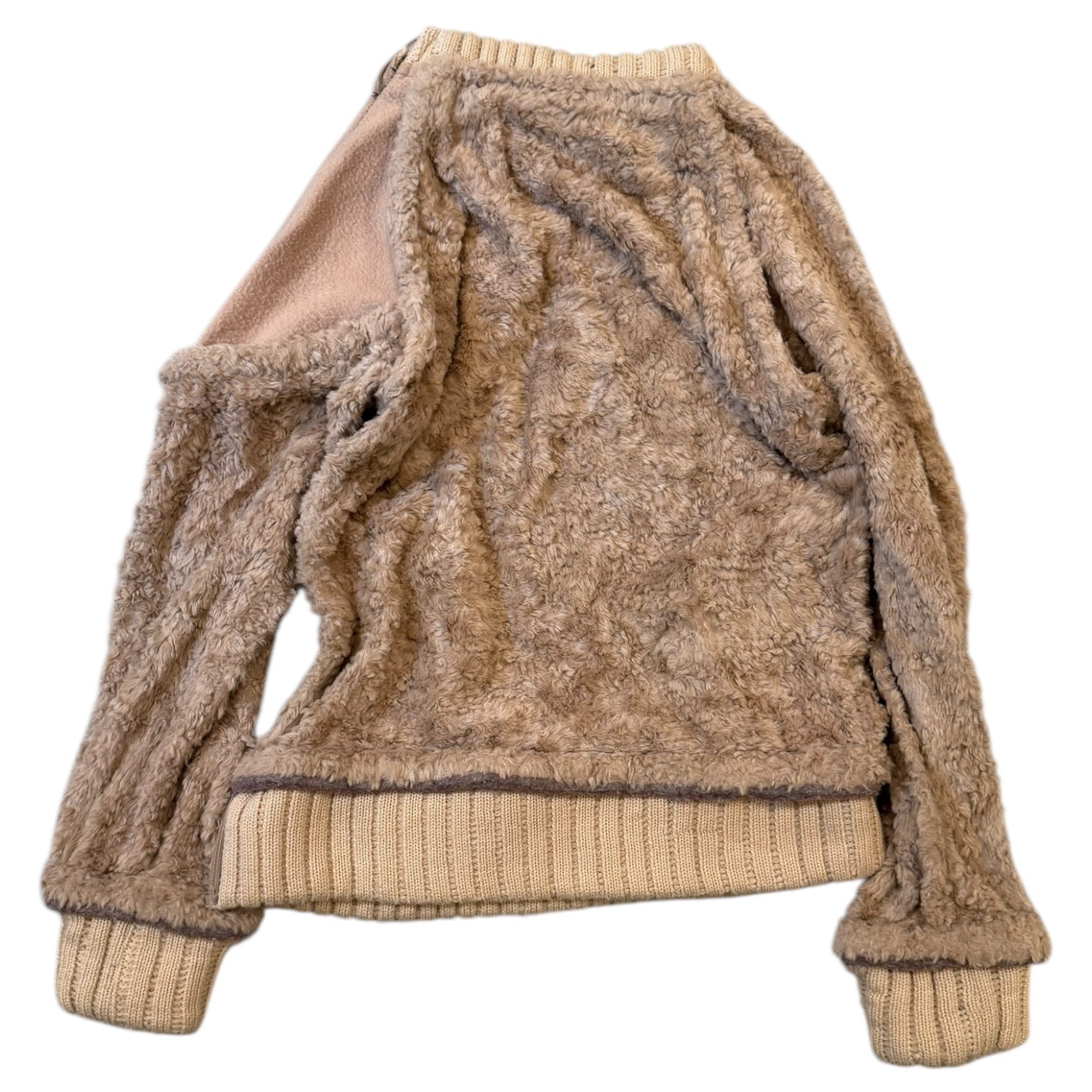 Late 90’s 20471120 Patchwork Knit Sweater with alternating fabrics, off white color does S-M measures 27 sleeves 20.5 pit to pit 16.2 shoulders 26 sleeves