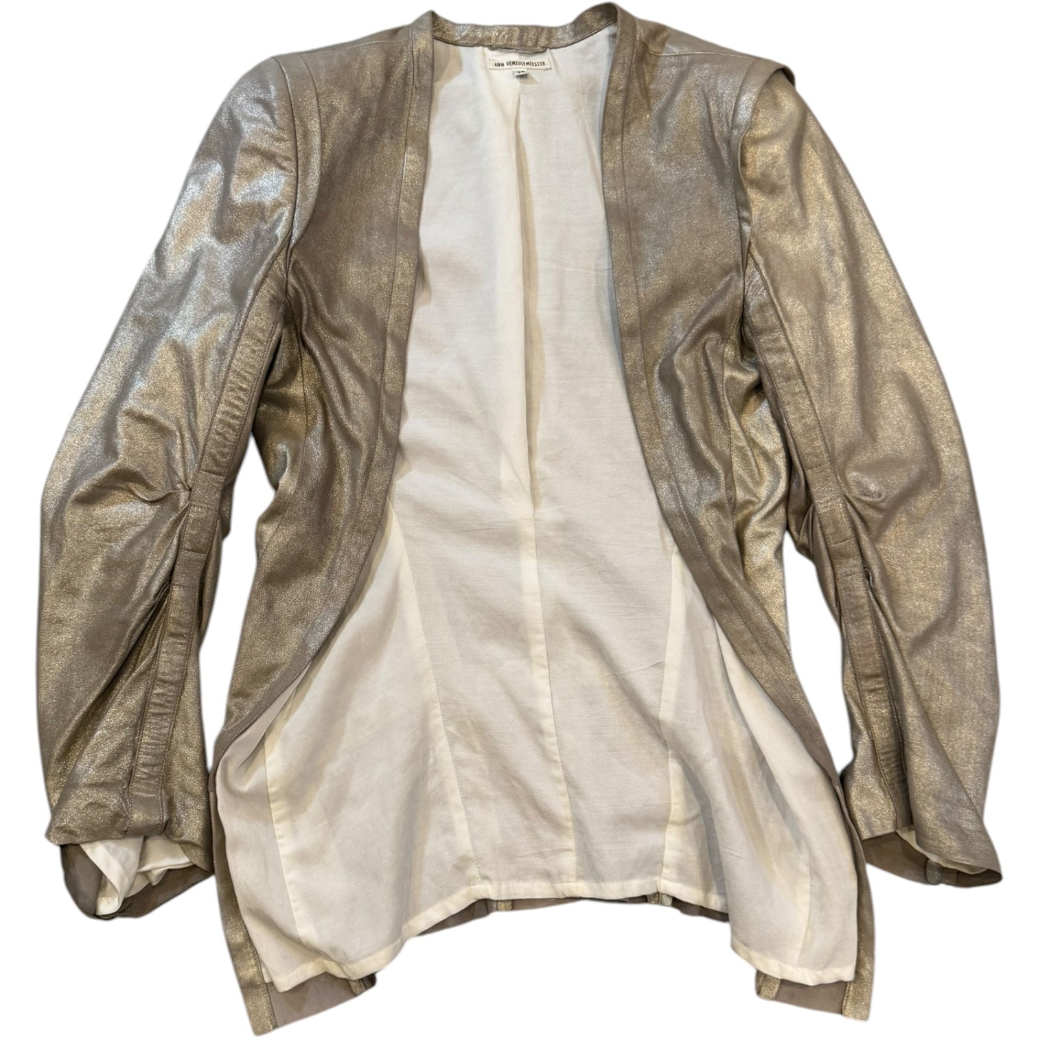 Ann Demeulemeester Open Front Blazer in Gold Metallic Calfskin, tag size 36 / Women’s S fits true measures 15.5 shoulders 17.75 pit to pit 24.25 sleeves 26 length