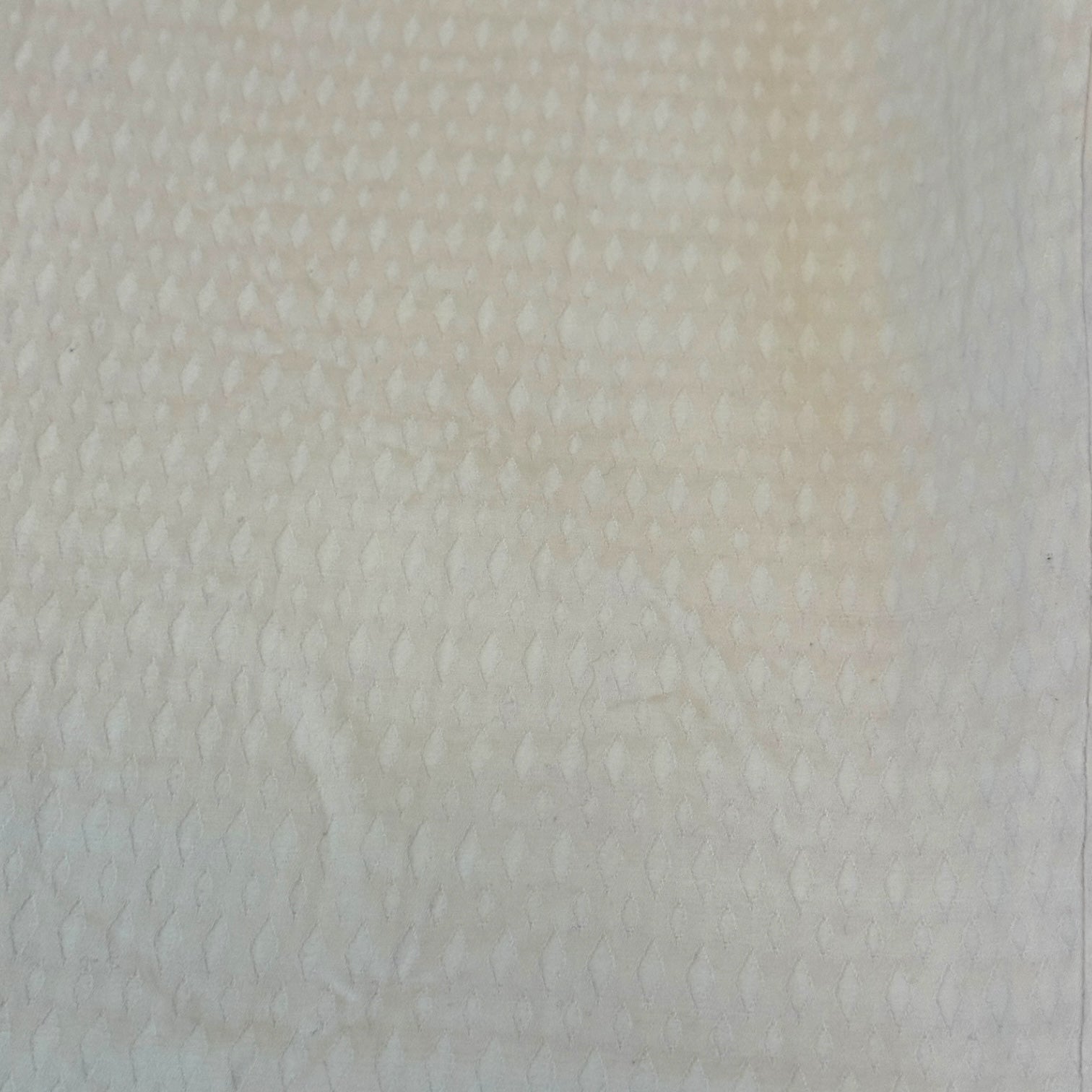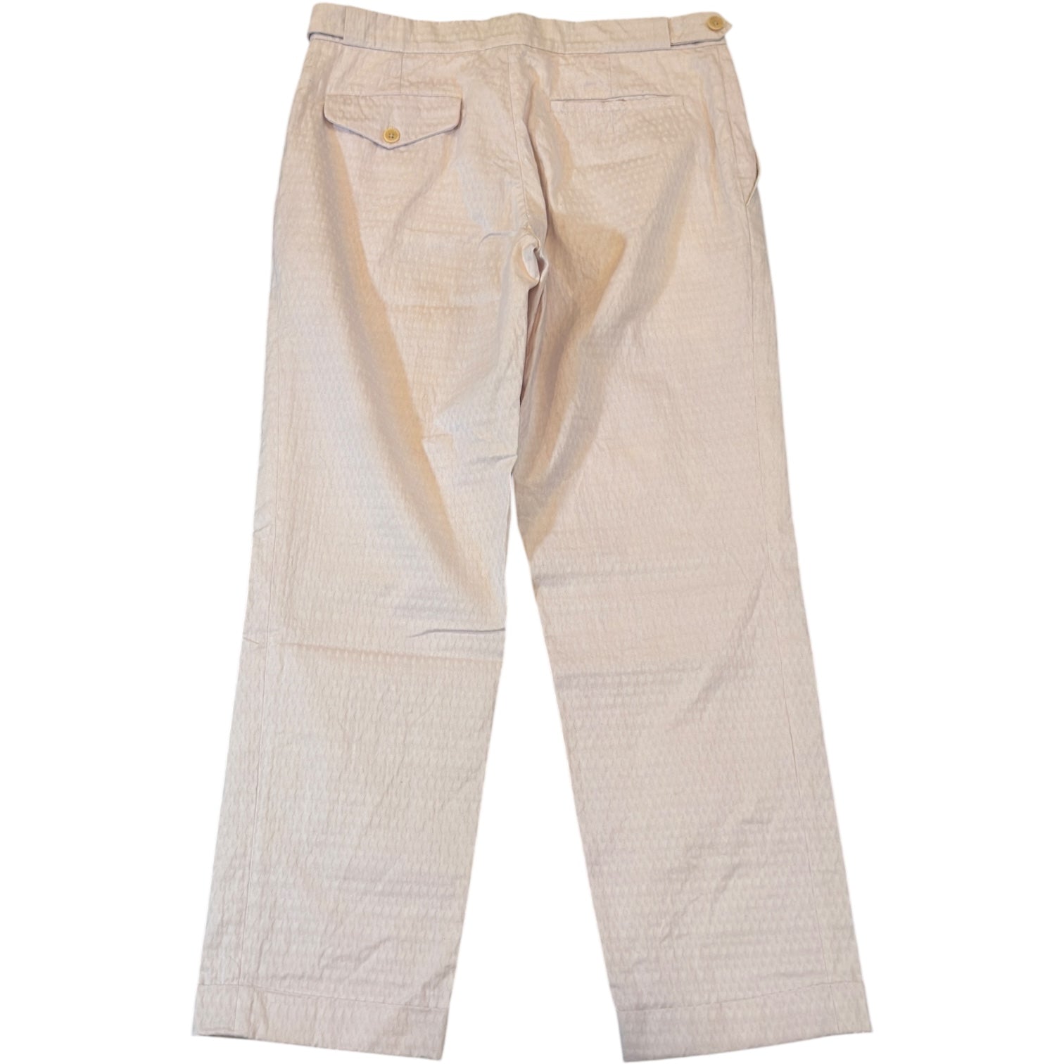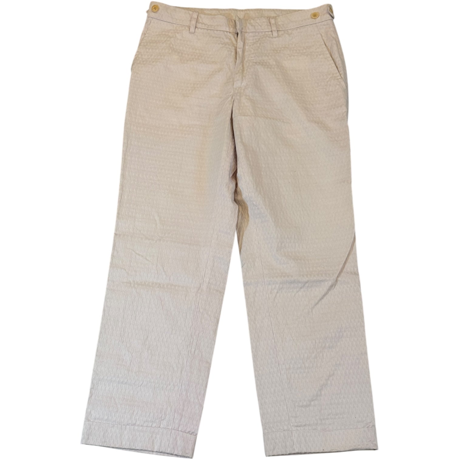Ann Demeulemeester Textured Jacquard Trousers in Off-white/ Barely Pink, tagged S measures 32.5 waist (adjustable to 29) 9.75 front rise 13 back rise 29 inseam (capable of extending to 31.5 with help of tailor or seam ripper) 8 leg opening. These trousers from Ann Demeulemeester feature a textured cotton jacquard with an alternating diamond motif, highlighting their unique tone between pale off white and slightly warmer. In flawless used condition with plenty of life left.