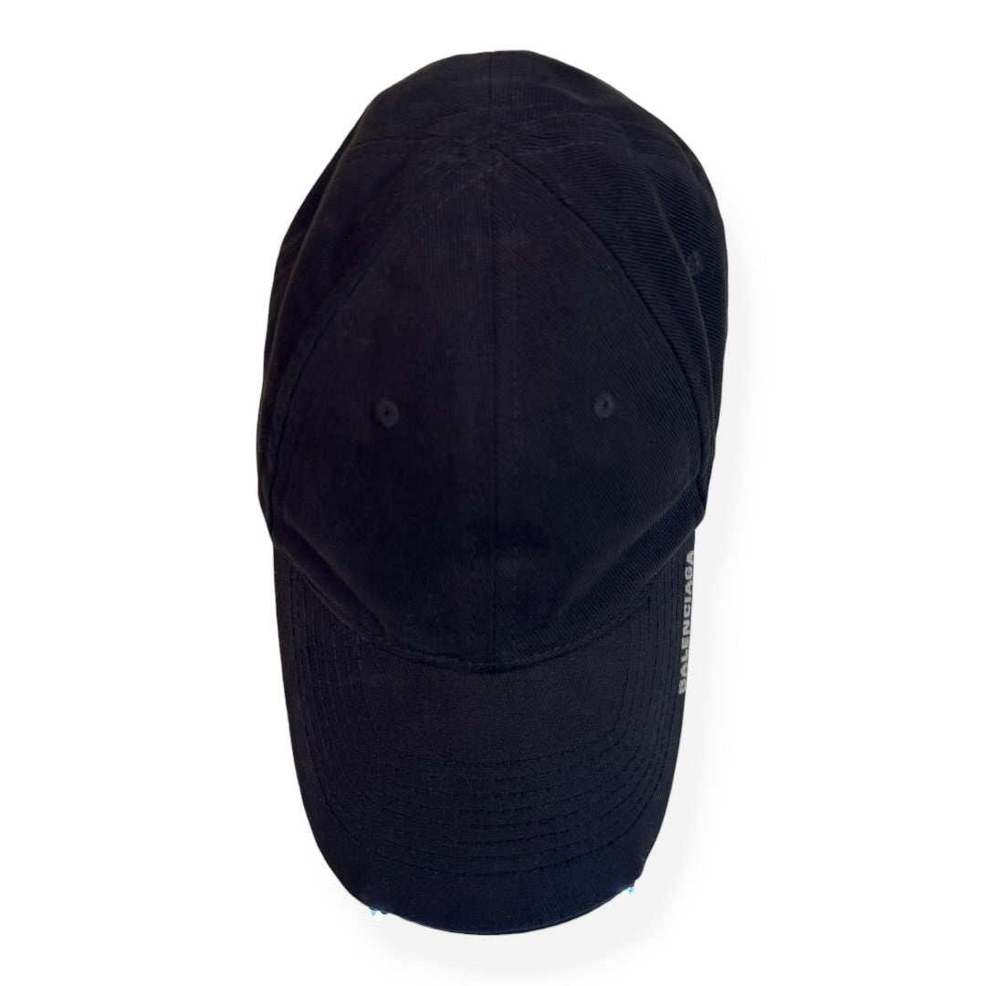 Balenciaga LED Flashlight Hat in Black tagged size Large. USB-C charging dock in Velcro strap, on / off button on underside of brim. In good used condition with no flaws.