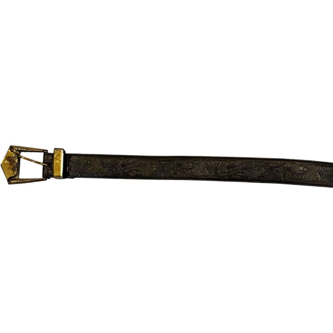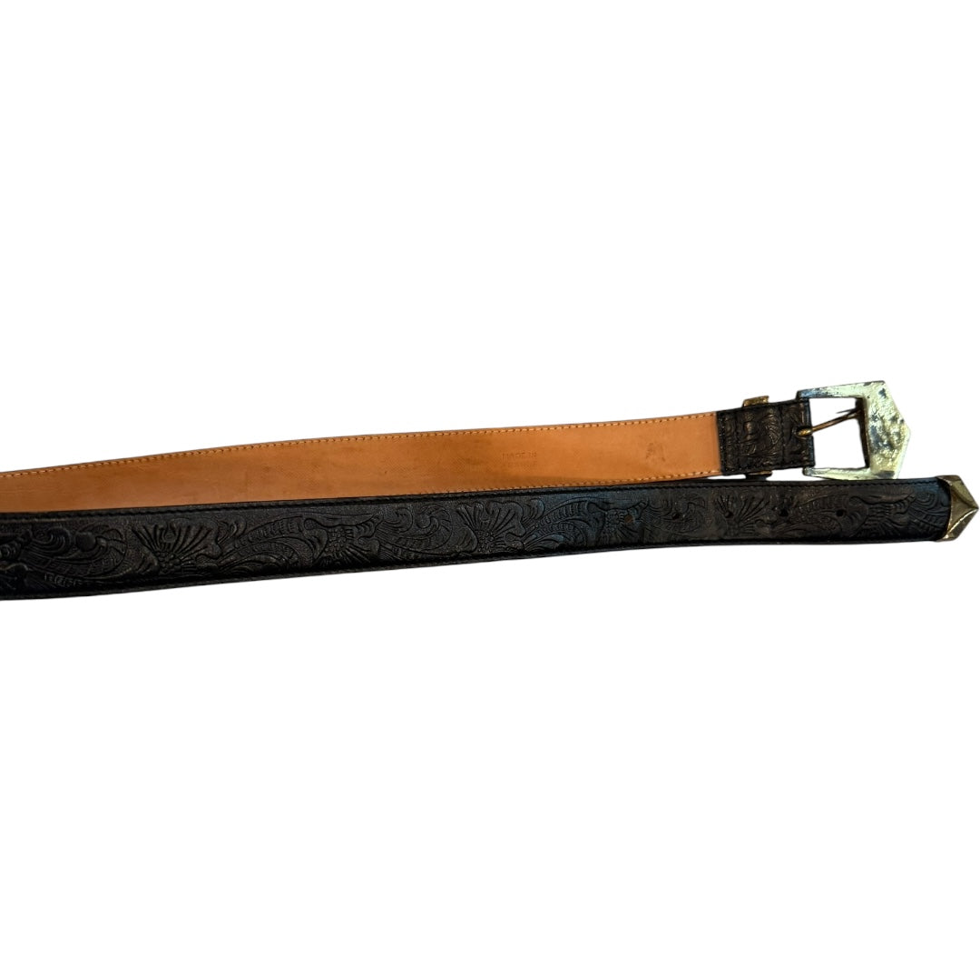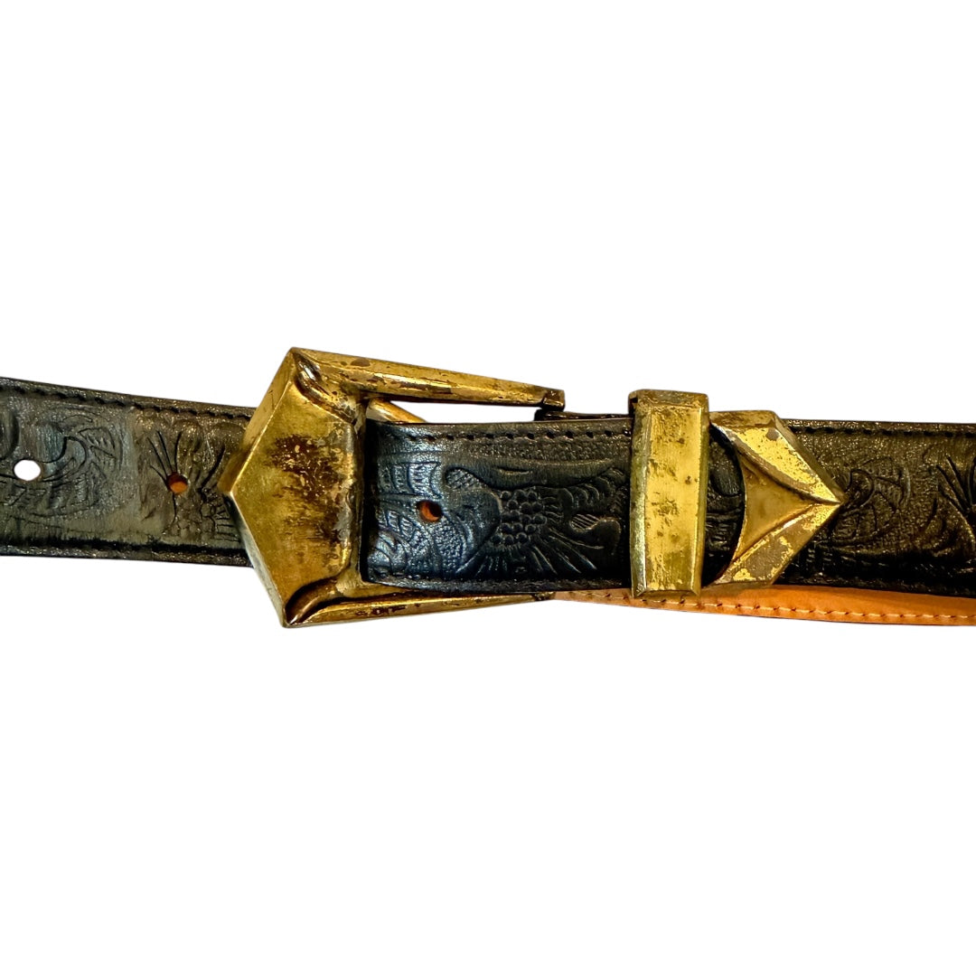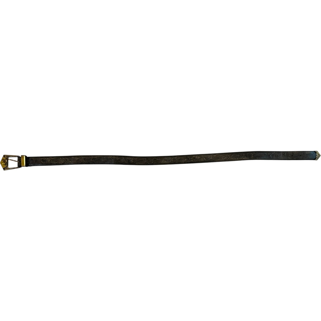 Balmain by Christophe Decarnin Carved Leather Belt with Tarnished Gold Tone Buckle, best for waists 29-33 inches. Made in France, no flaws.