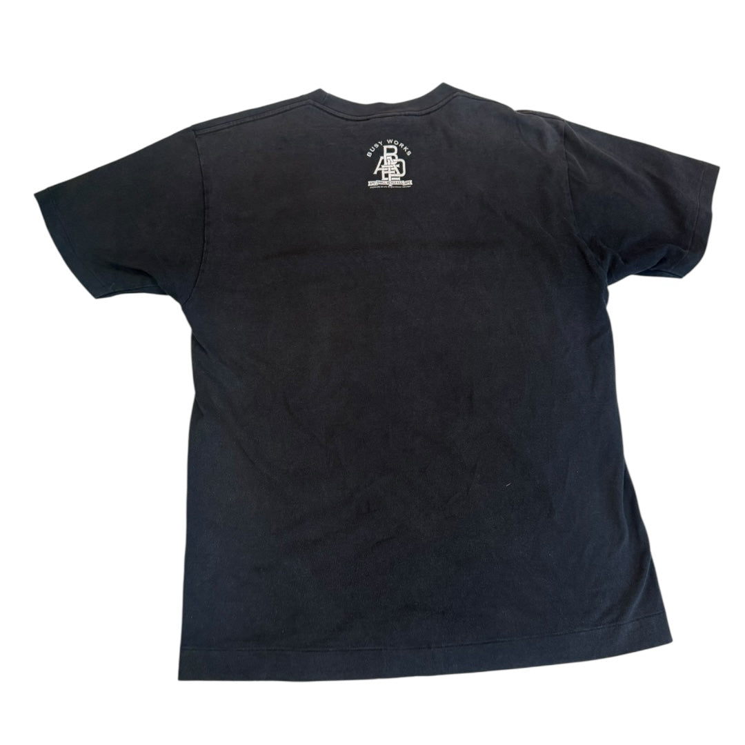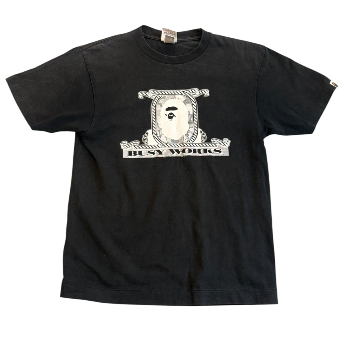 00’s Bape Busy Works Graphic T-Shirt in Black tagged size M measures 19.25 pit to pit 18.5 shoulders 25.5 length. In good condition for age, some minor color fading.