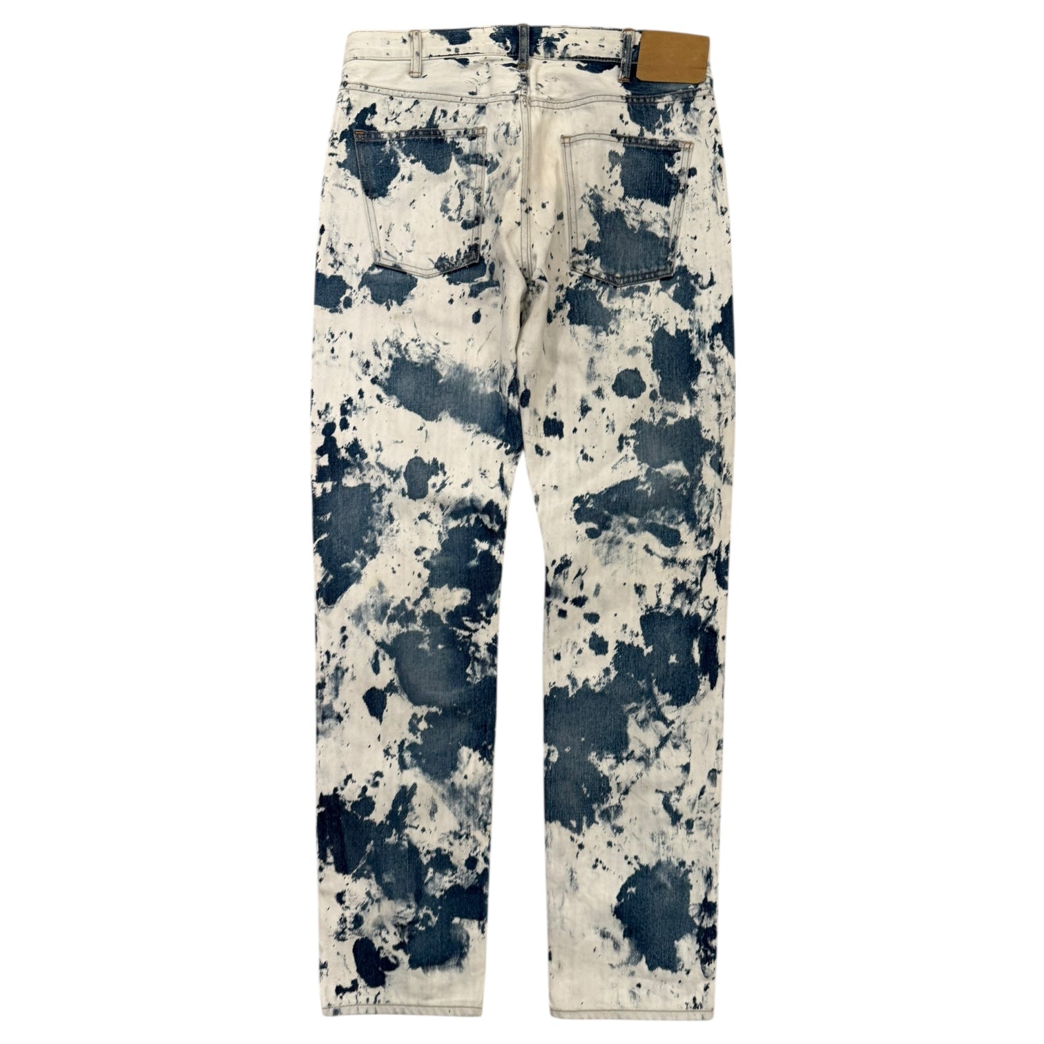 Celine by Hedi Slimane SS2021 ‘Running Kids’ Denim, a bleach patterned heavyweight denim with classic Italian 5 pocket construction on a slim straight model/. 32.5 Waist 34 inseam 10 back 13.5 8 leg opening. No flaws