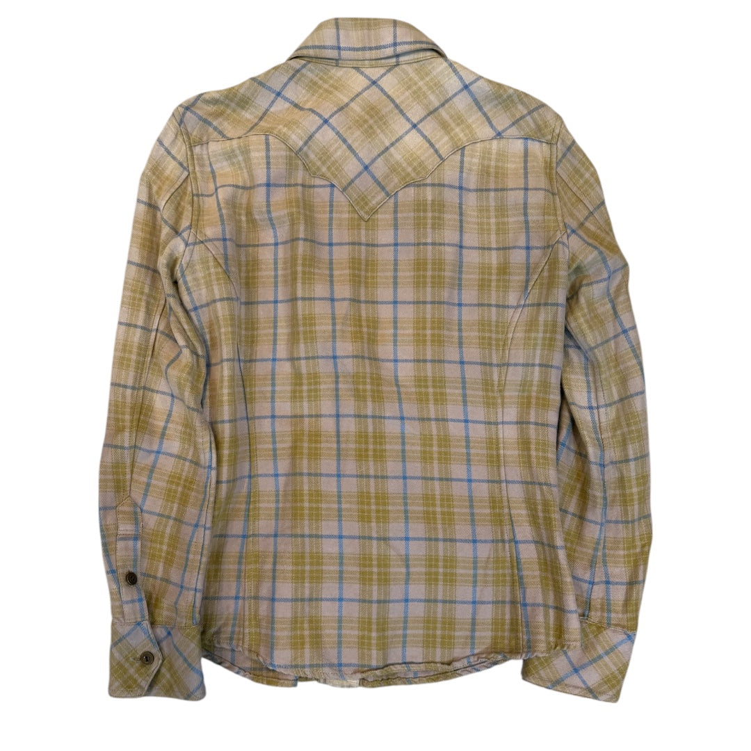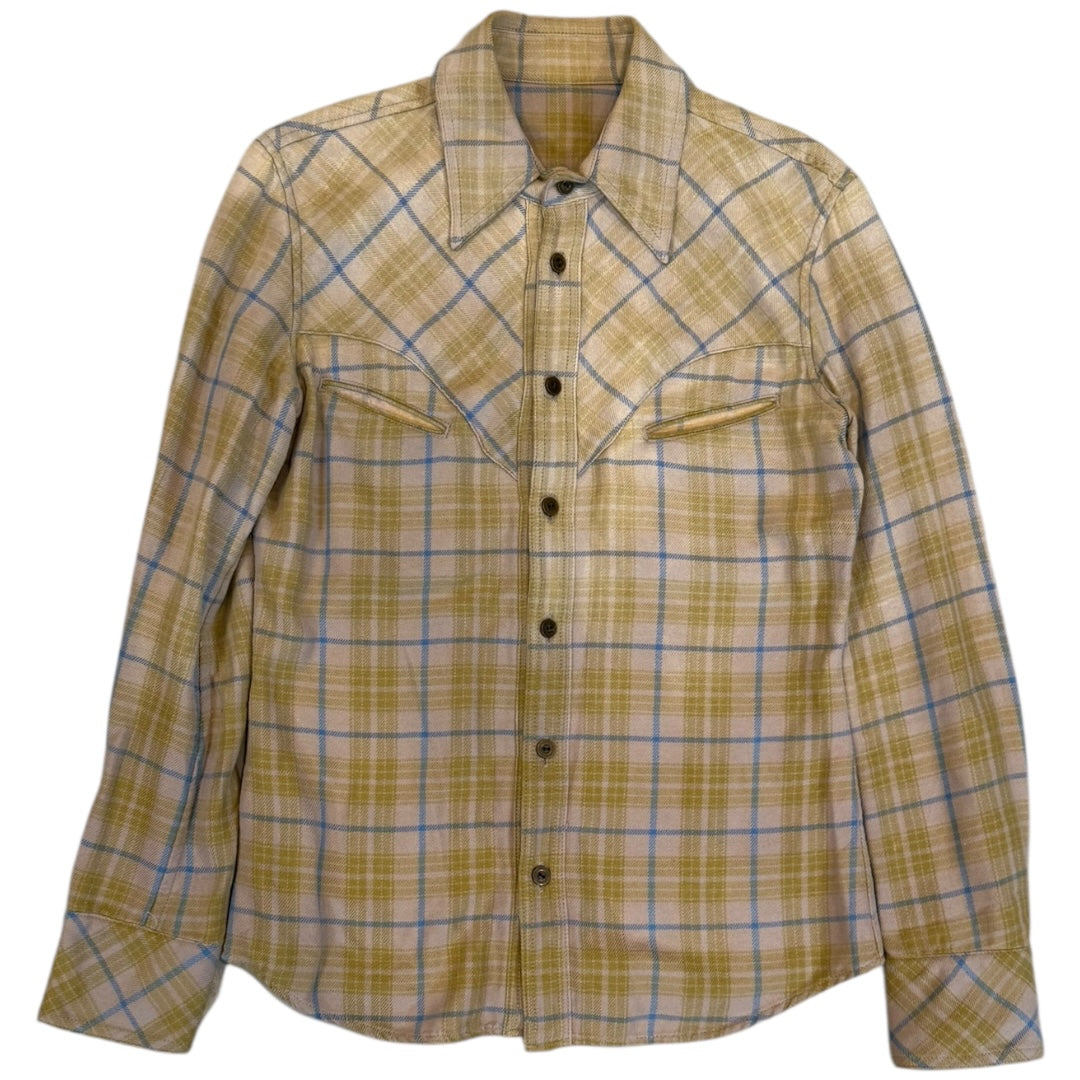 Isamu katayama backlash 100% cotton and suede hybrid shirt in yellow / blue size free measures 17.5 shoulders 24 sleeves 19.5 pit to pit 26 length no flaws