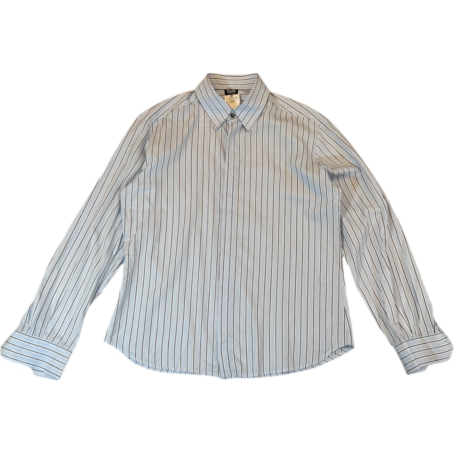 D&G Blue Striped Hidden Placket Shirt in 100% Cotton, tagged size 56 /XXXL, fits slim best for XL - slim XXL measures 23.5 pit to pit 20.5 shoulders 27.5 sleeves 28.75 length. In great condition with no noticeable flaws, previous owners name on inside neck.