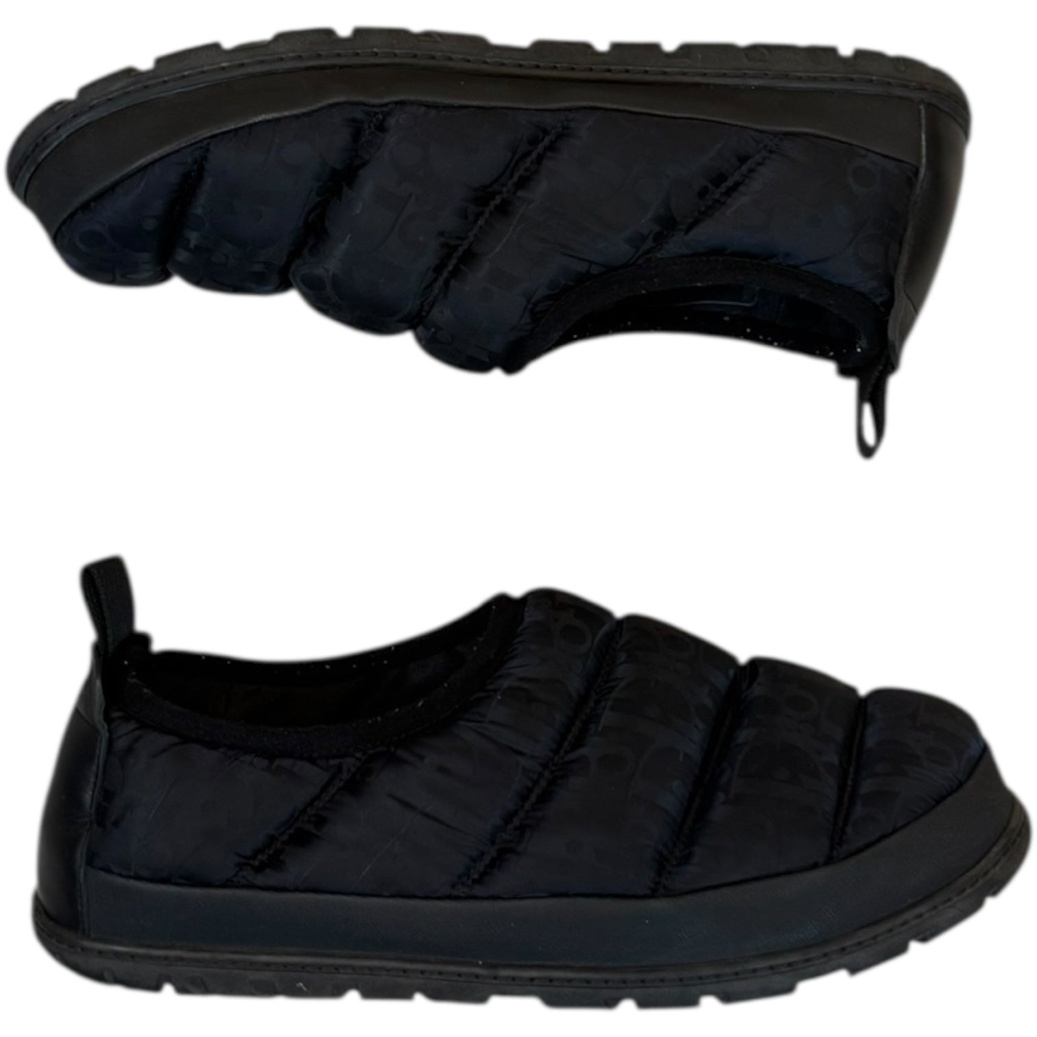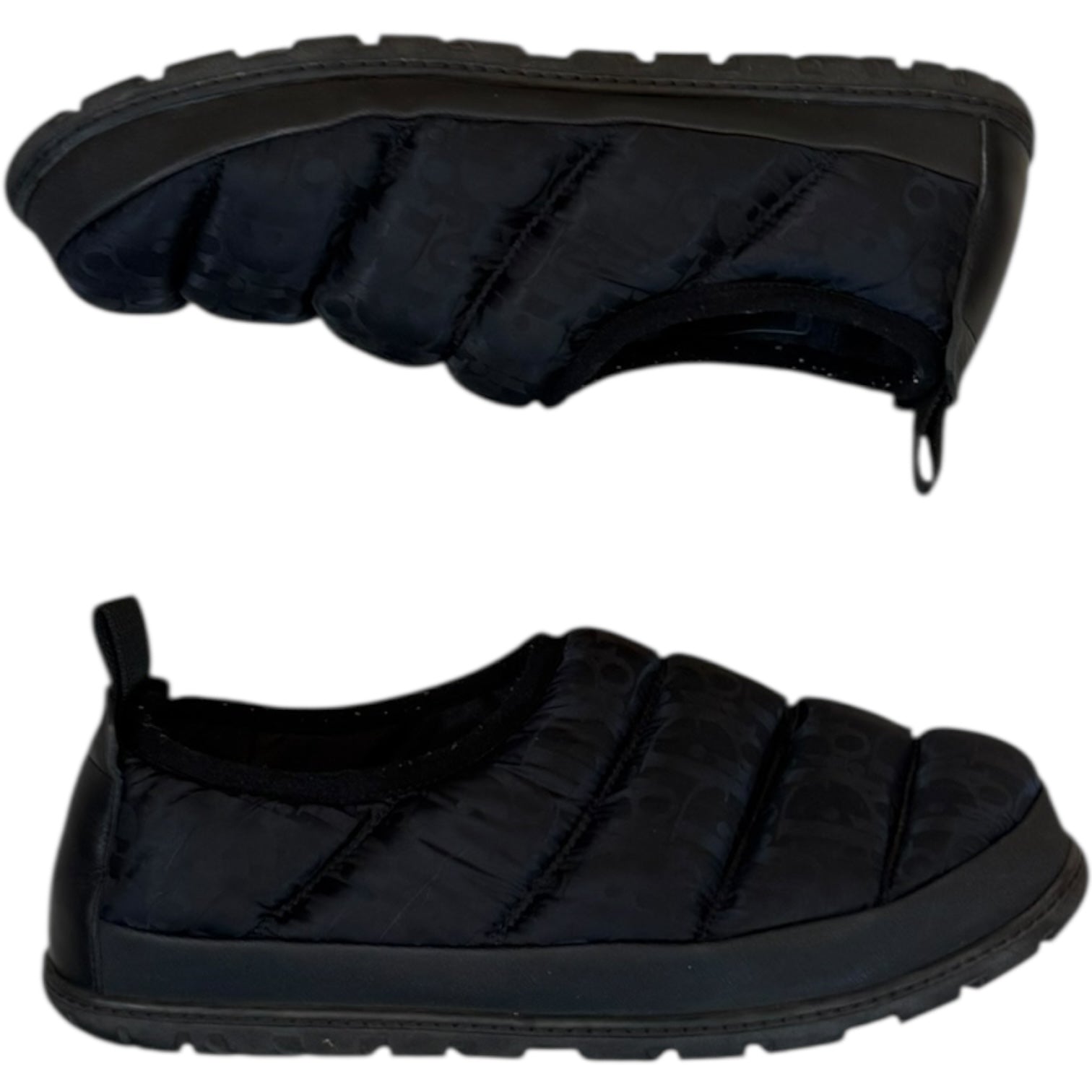 Dior Oblique Puffer Shoe, black size 45/US12 best for US11-12. This Kim Jones-designed Dior hybrid features a padded ‘puffer jacket’ type upper in Dior’s signature oblique pattern, combined with a rubber sole and highly durable midsole. Leather back panel, minor pilling visible on collar, no other flaws.