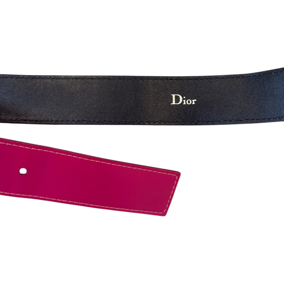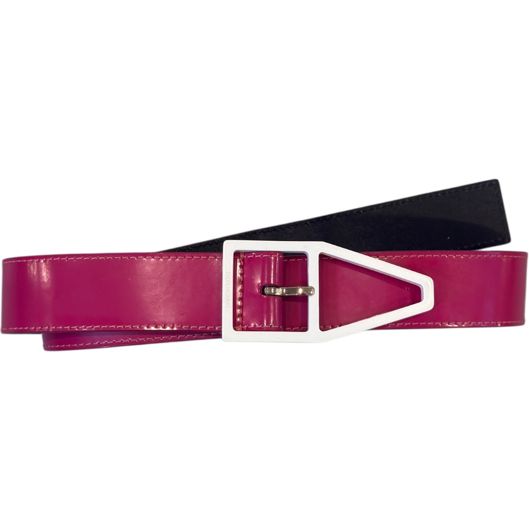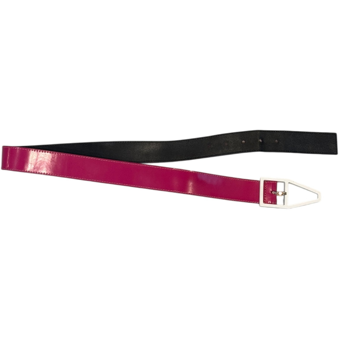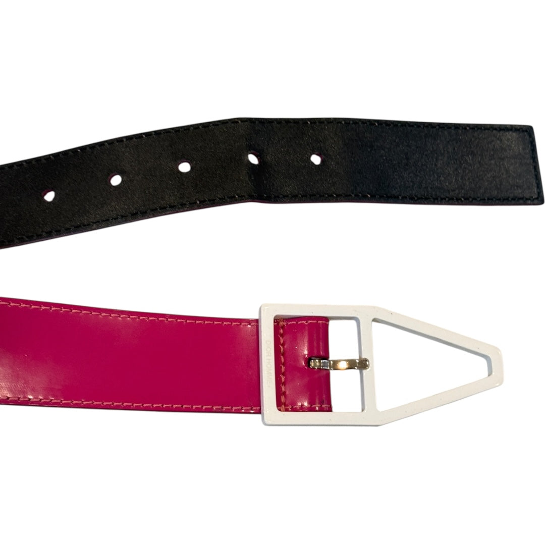 Dior Homme Spring 2008 by KVA Hot Pink Polished Leather Belt with White Metal Buckle, tagged size 80 fits waists 26-31. In good used condition with some creasing visible when unworn.