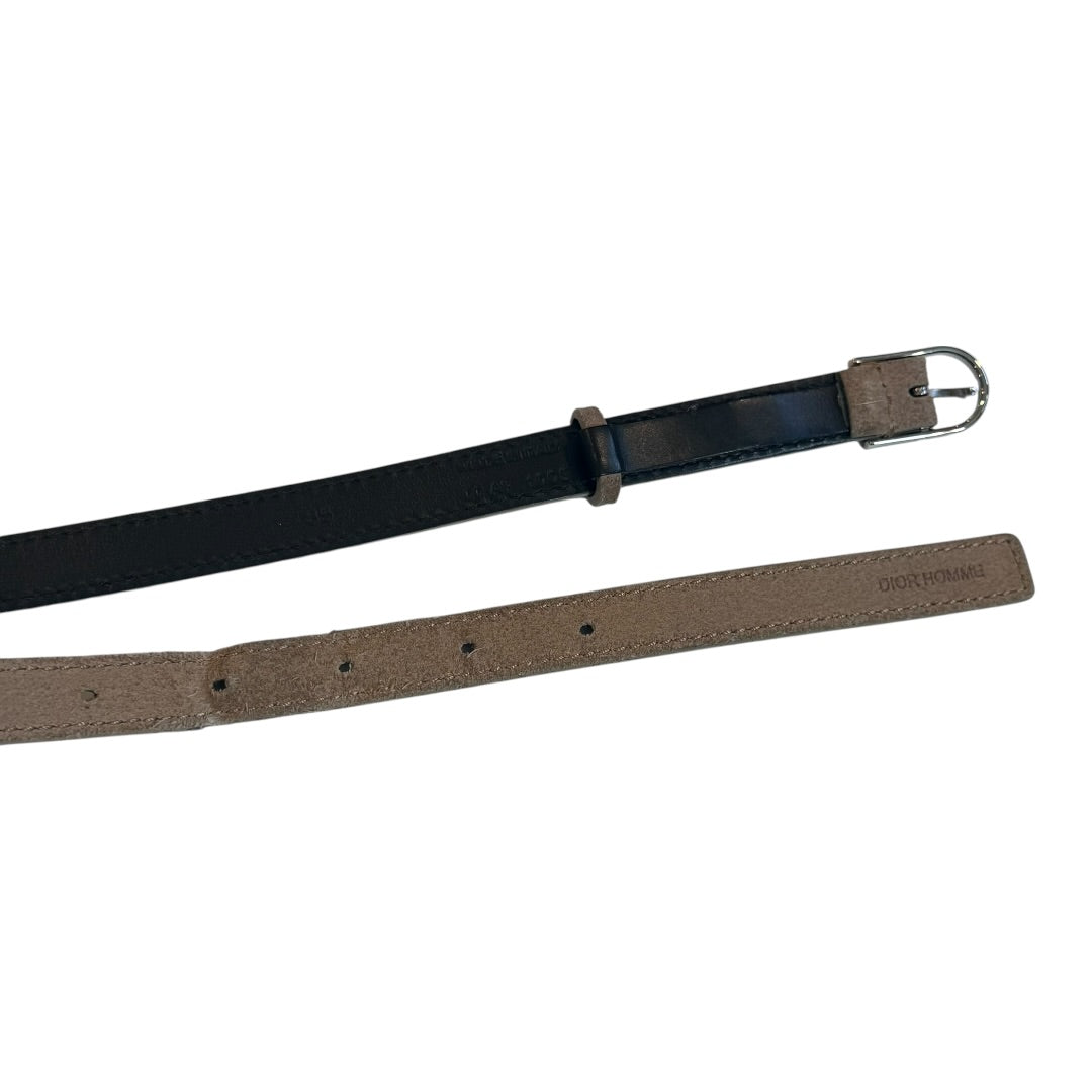 Dior Homme Spring 2010 Thin Suede Belt, tagged size 85 fits waists 31.5 - 35. Dior Homme imprint at buckle and end of belt, made in Italy. In excellent condition with some minor wear at one belt hole, pictured.