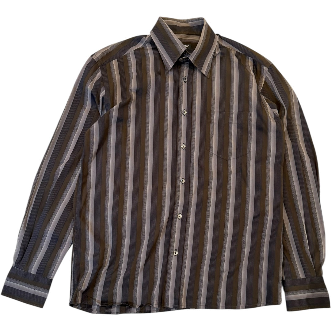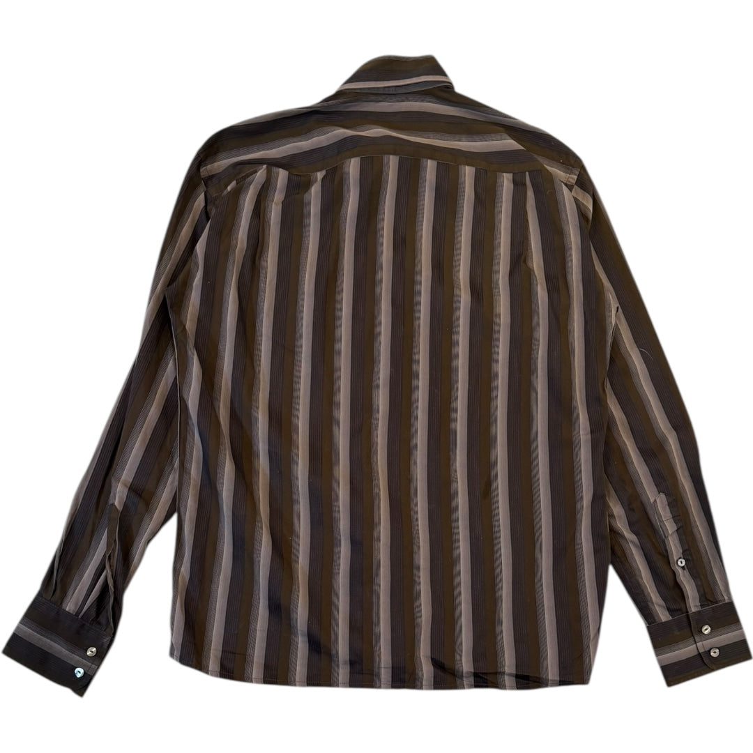 Dolce & Gabbana Black / Burgundy Striped Shirt tagged 15.5/40 fits like M-L measures 21 pit to pit 18.5 shoulders 24 sleeves 27 length. In good used condition with no flaws