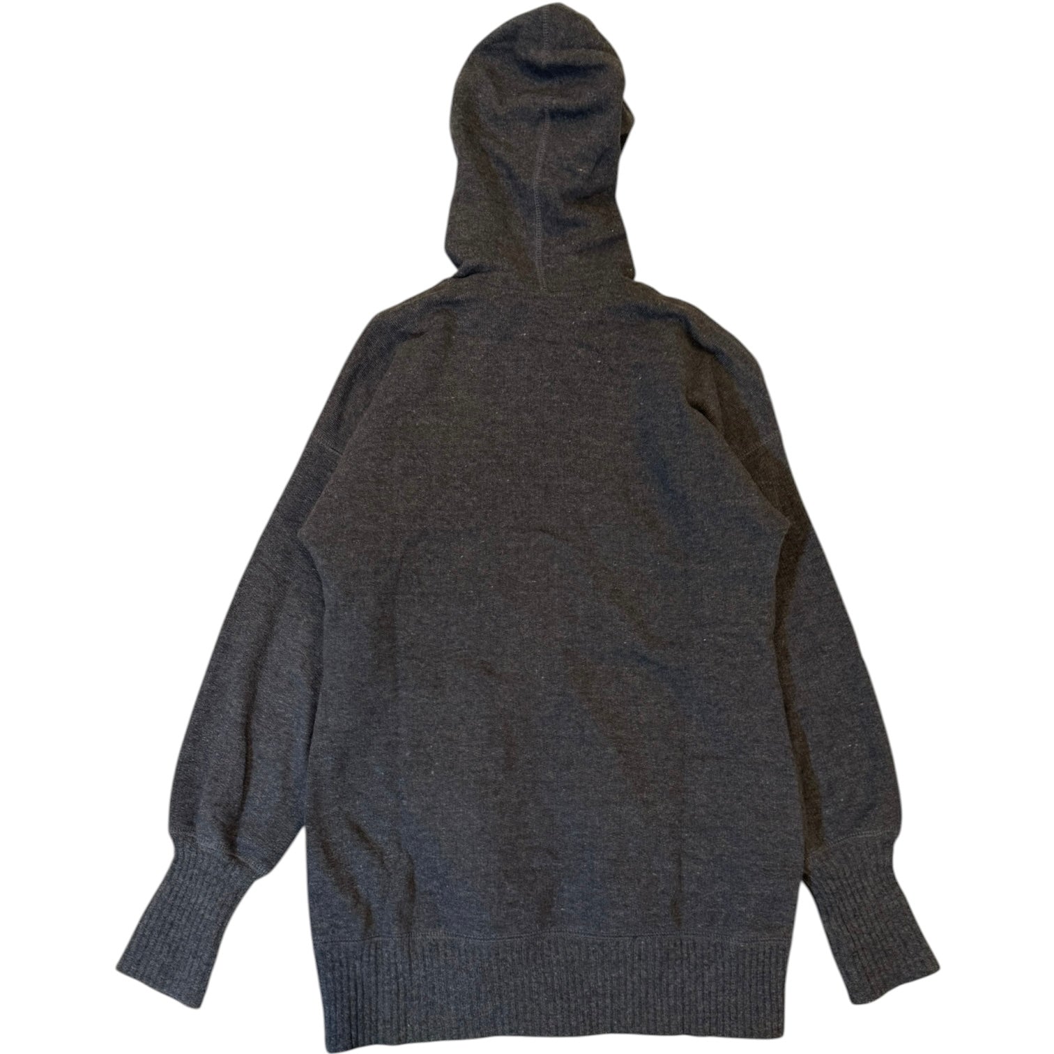 Dolce & Gabbana Double Layered Drop Shoulder Zip Hoodie, grey cotton interior with a grey French Terry outer and exaggerated knit cuffs at the wrist. Fits S-M, measures 20.5 pit to pit 23 shoulders 22.5 sleeves 28 length