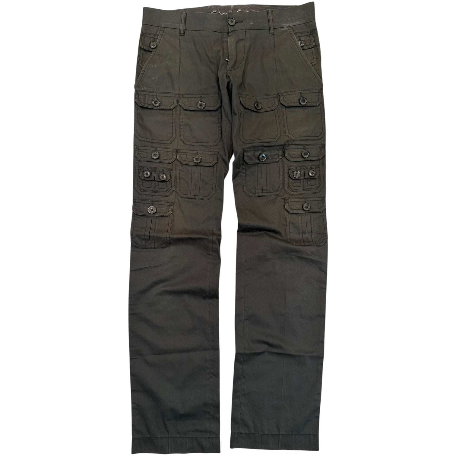 Early 00’s Dolce & Gabbana Low-rise 24-pocket Cargo Pants in Black Cotton tag size 44 / women’s XL men’s XS fits men’s S measures 31.5 waist 7.75 rise 11 back rise 33 inseam 7 leg opening