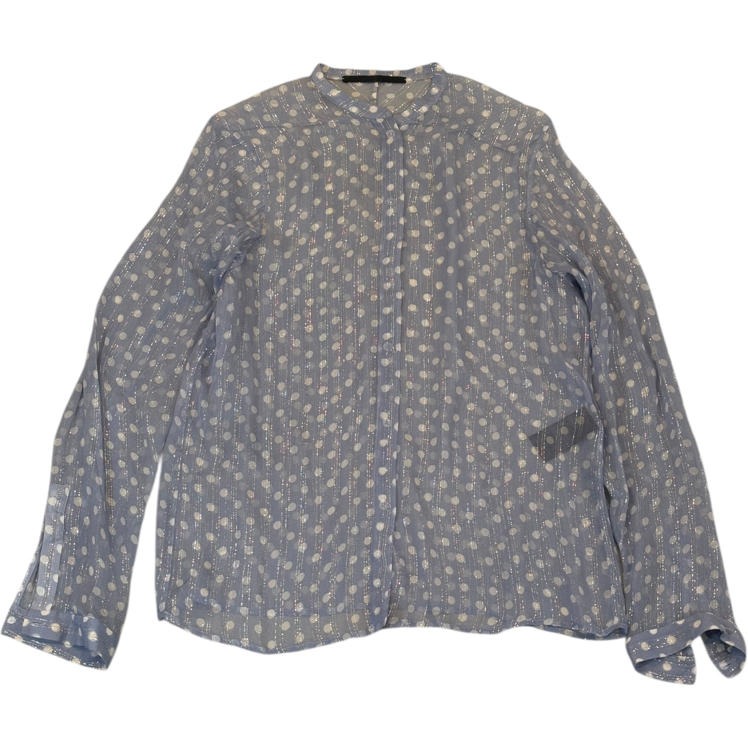 Haider Ackermann Sheer Dotted and Striped Shirt in 96% silk. Measures 19.75 pit to pit 17 shoulders 28 sleeves 26 length. Tag 38/ Women’s M best for Men’s M or Women’s L+