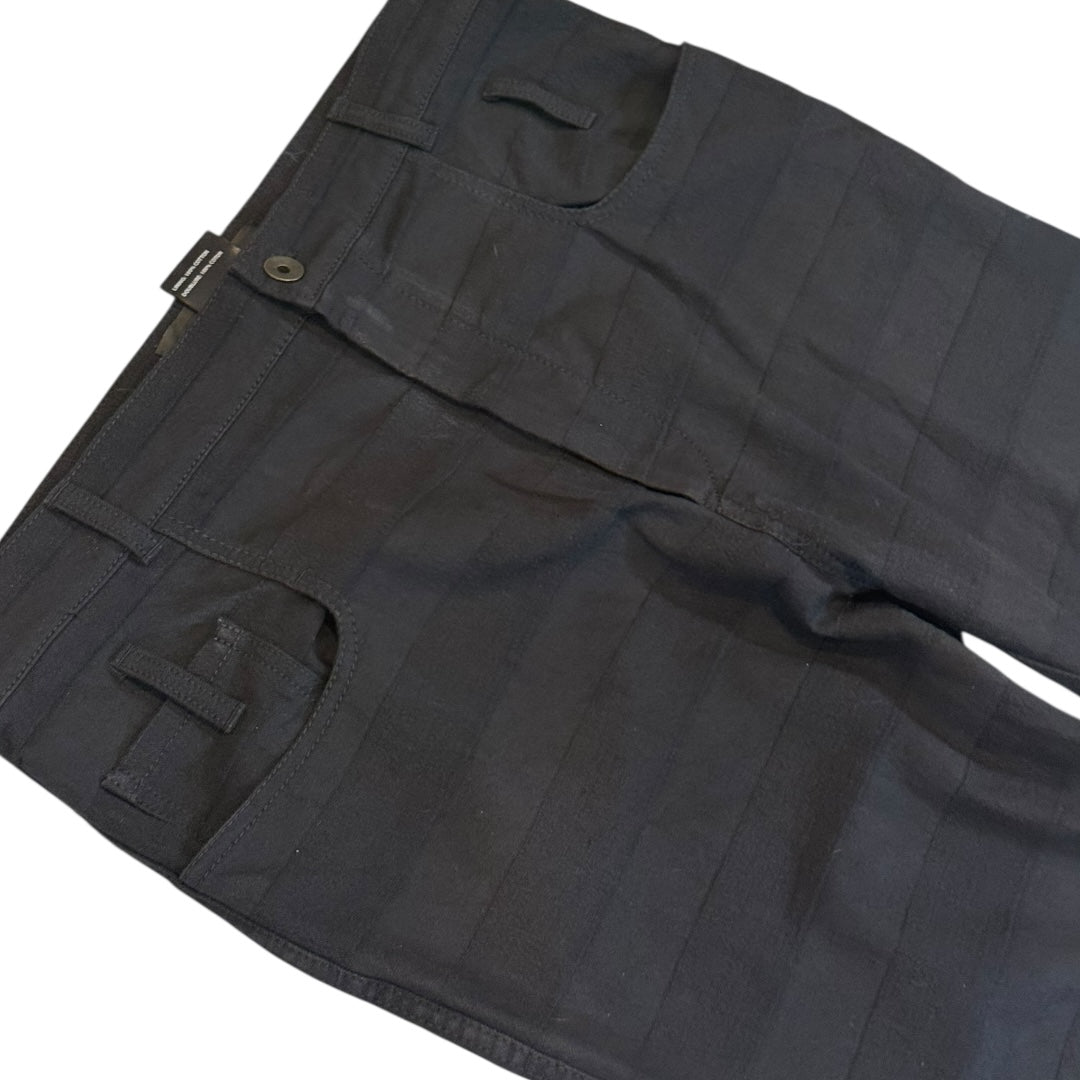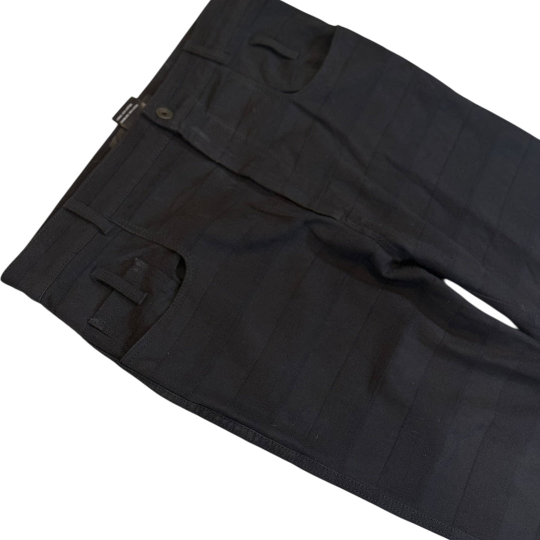 Haider Ackermann 5 pocket jeans in a striped jacquard lightweight 100% cotton denim tag size S measures 34 waist 12.75 front rise 14.25 back rise 27 inch inseam 7 inch leg opening. Good used condition with light fading from wear