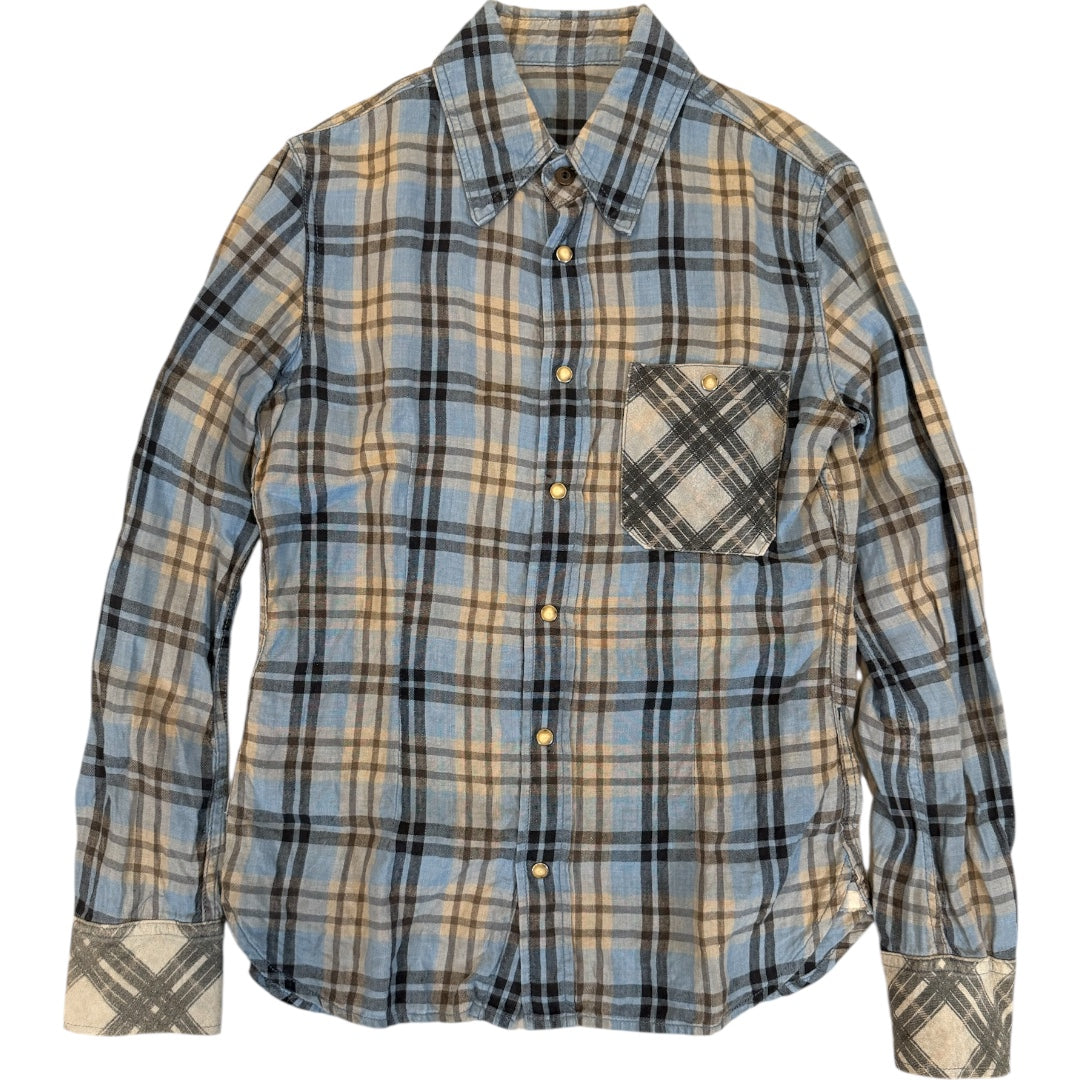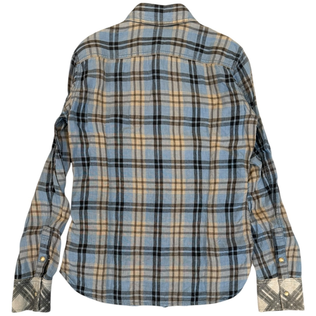 Isamu katayama backlash 100% linen and suede hybrid shirt in blue size S measures 15.5 shoulders 24 sleeves 17.5 pit to pit 26 length no flaws