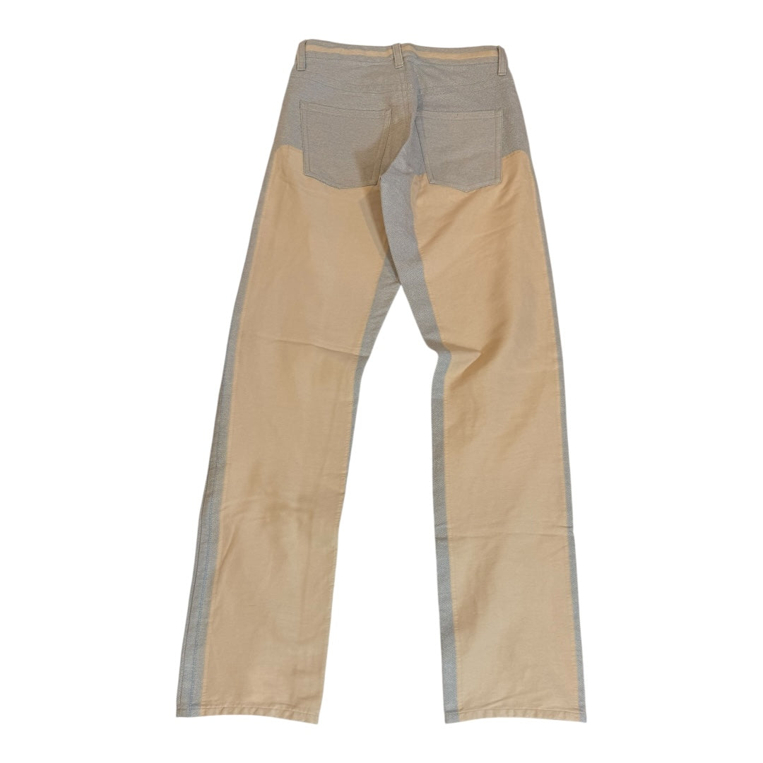 Issey Miyake Spring 2003 A-POC Denim tagged size 1 measures 29.5 waist 11 front rise 13.75 back rise 34.5 inseam 8.25 leg opening. In flawless condition.