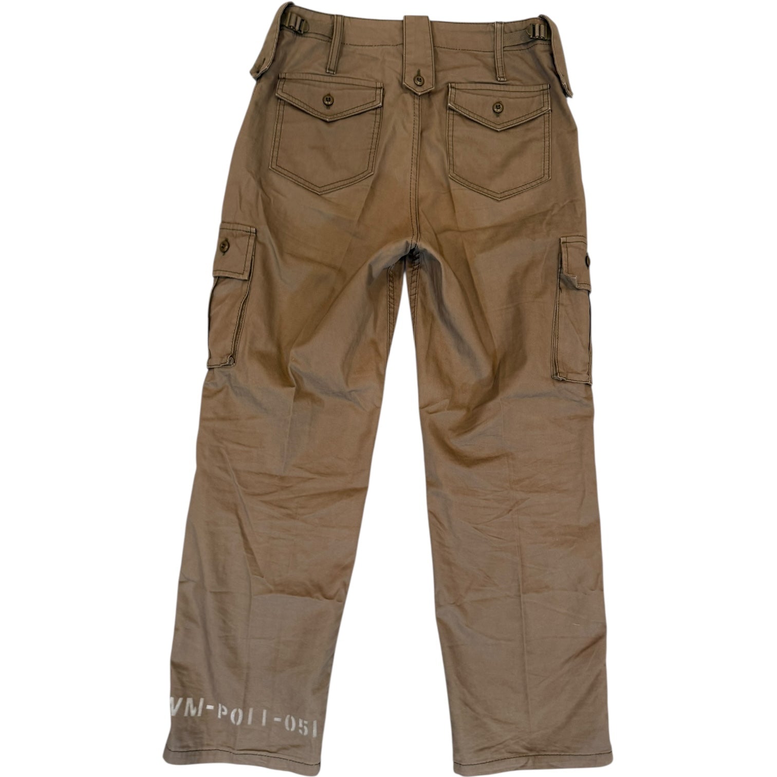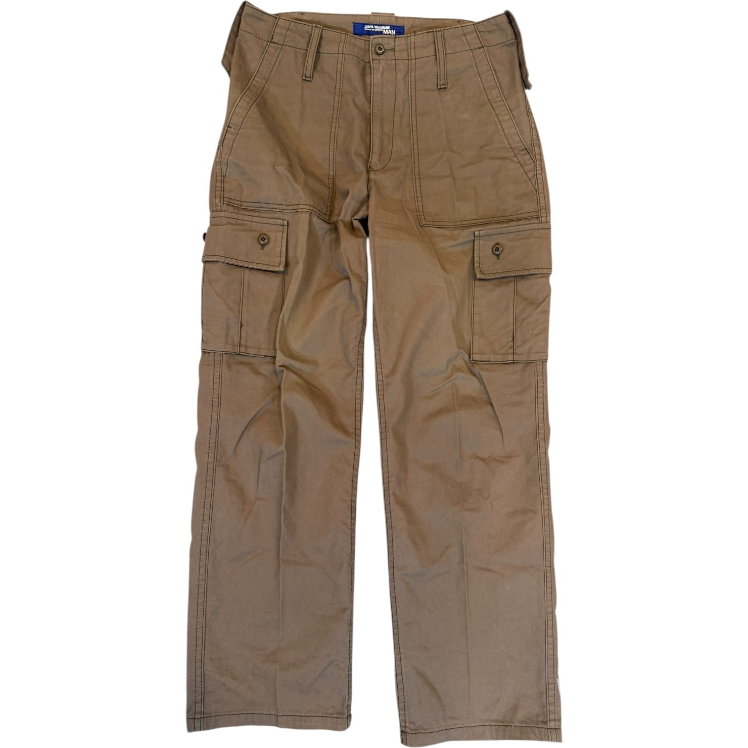 Junya Watanabe MAN SS2004 Stencil Print Cargo size M measures waist 31.5 front rise 11 back rise 14 inseam 29.5 leg opening 8. Missing drawstring at ankle, can be replaced to tighten ankle closure.