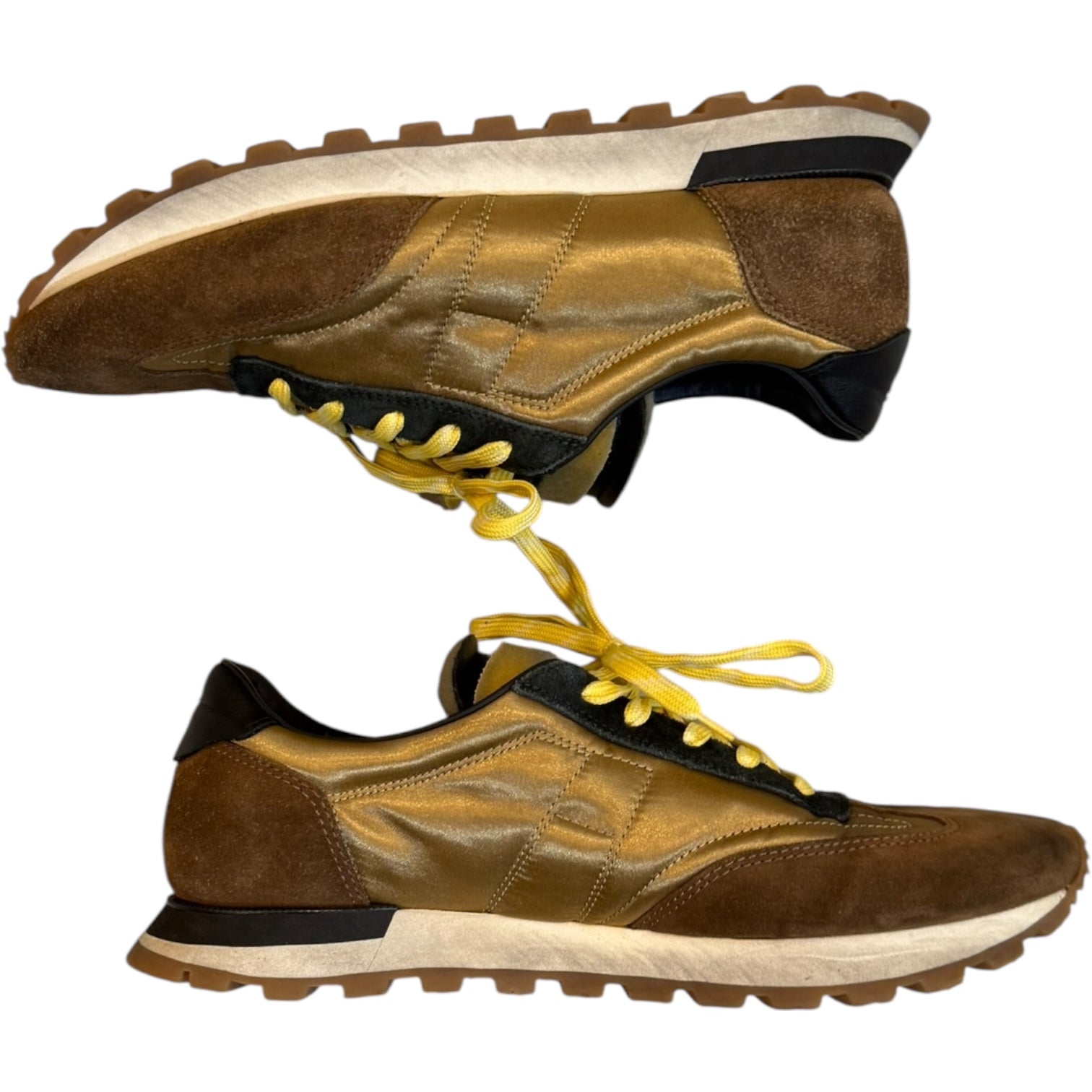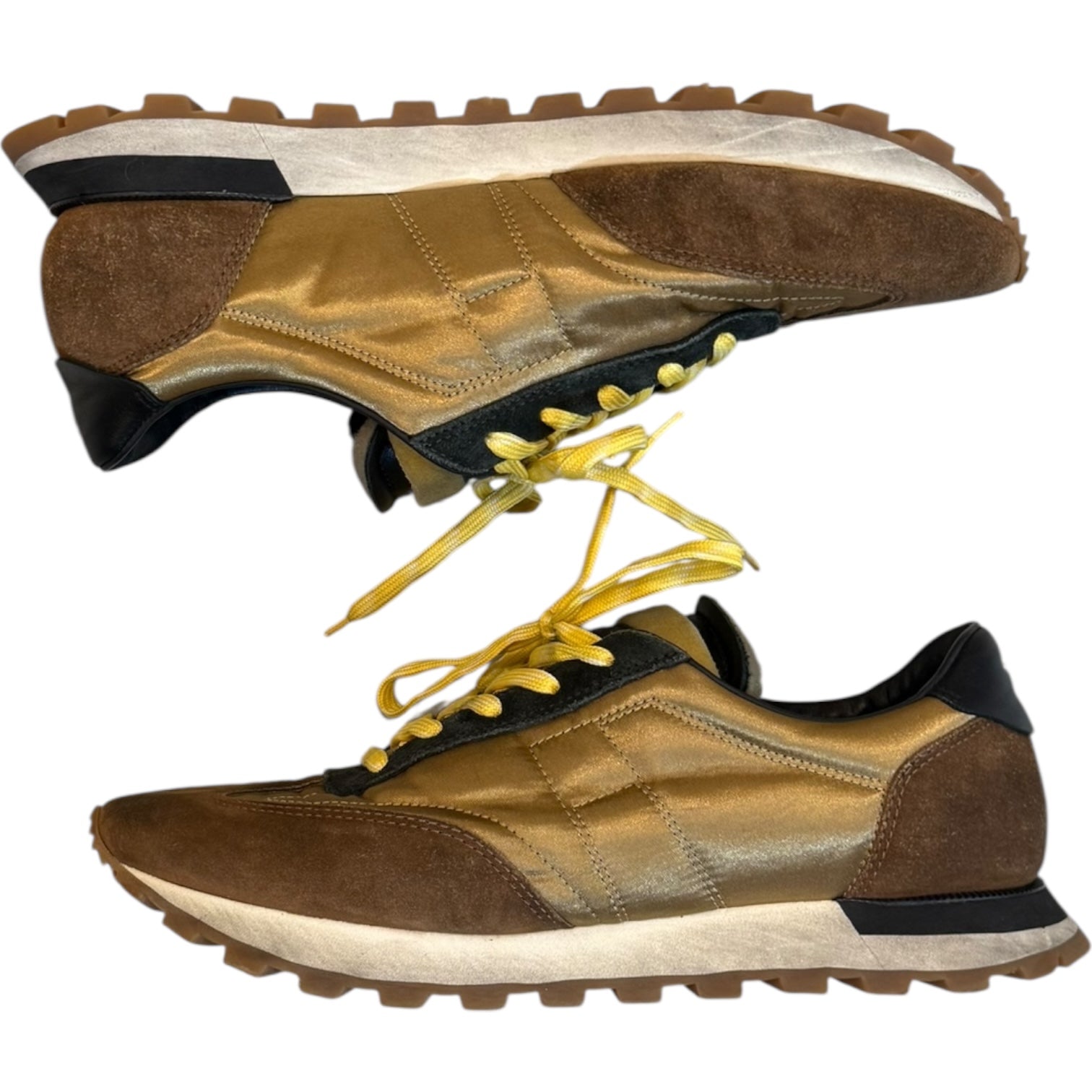 Maison Margiela Satin and Suede Overpadded Runners size 44/ US11 fits US10.5-11.5. Minor dirt on sole unclear if from production or wear, rest of shoe has no flaws. Features an overly padded double tongue with silky satin side panels and a running inspired sole. No box