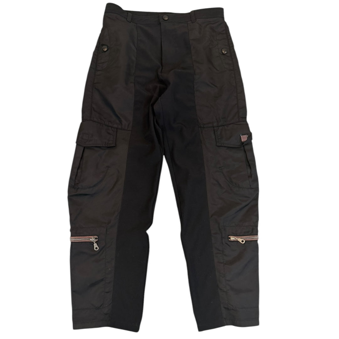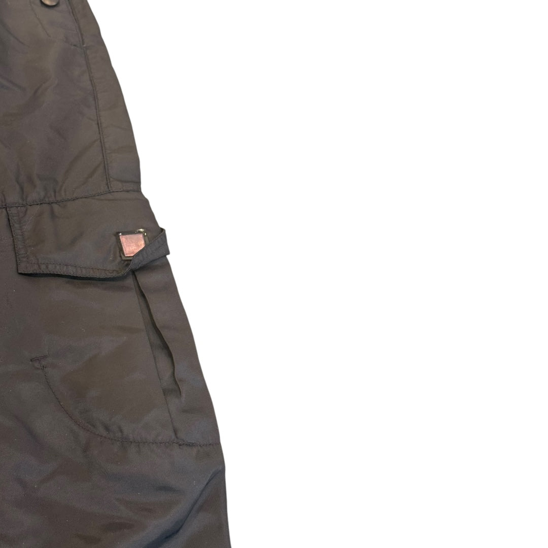 these well crafted trousers from M+FG feature a parachute trooper inspired nylon panelling with plenty of cargo space finished with a variety of metal snap and zip closures. 9/10 used condition