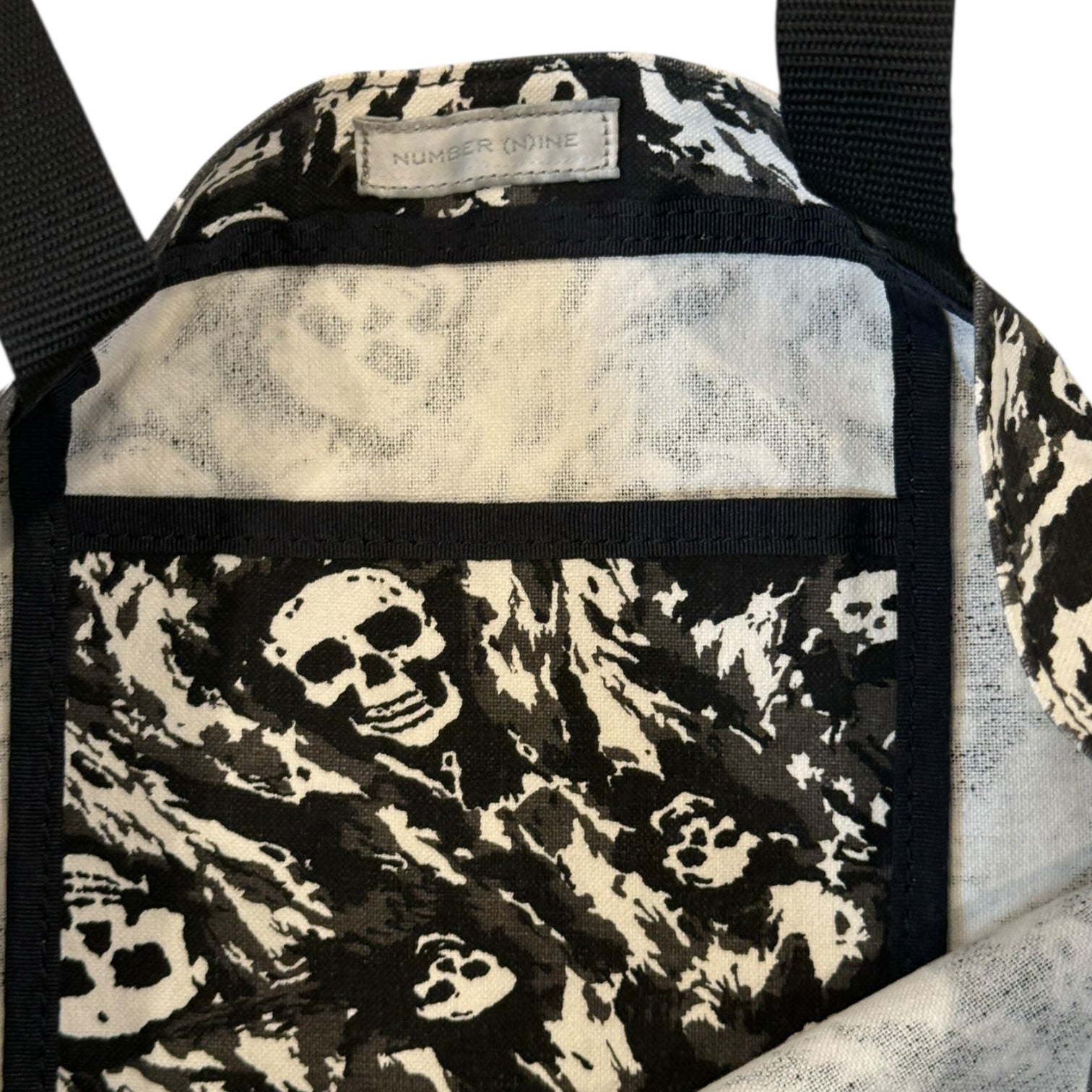 Number (N)ine Spring 2001 ‘Time Migration’ by Takahiro Miyashita Oversized Skull Camo Tote in 100% cotton canvas. This robust tote features a large capacity in Spring 2001’s iconic ‘Skull Camo’ print. Measures 17 inches wide by 20 inches length, silver tag at internal and small ID pouch. Ballistic nylon carrying straps. In perfect condition for age with no noticeable flaws.