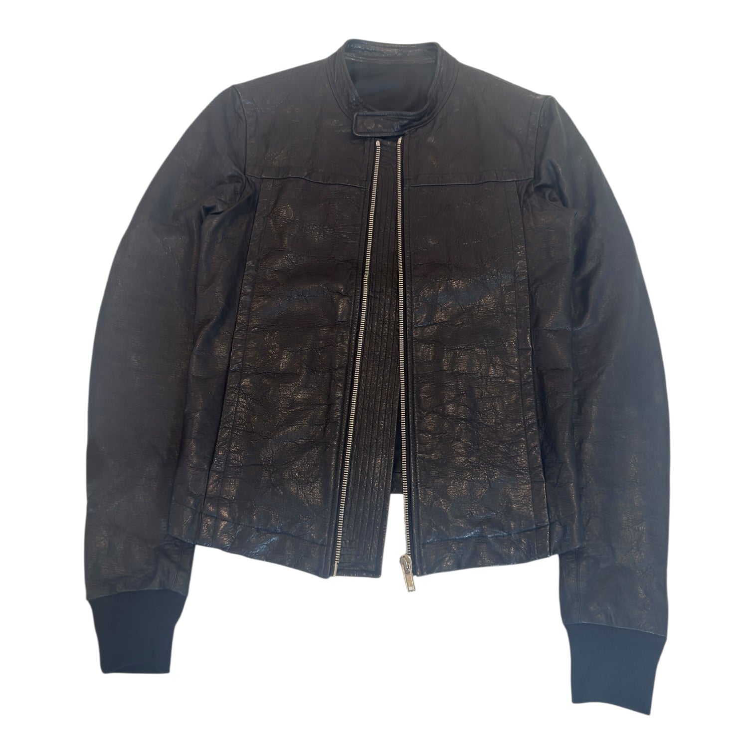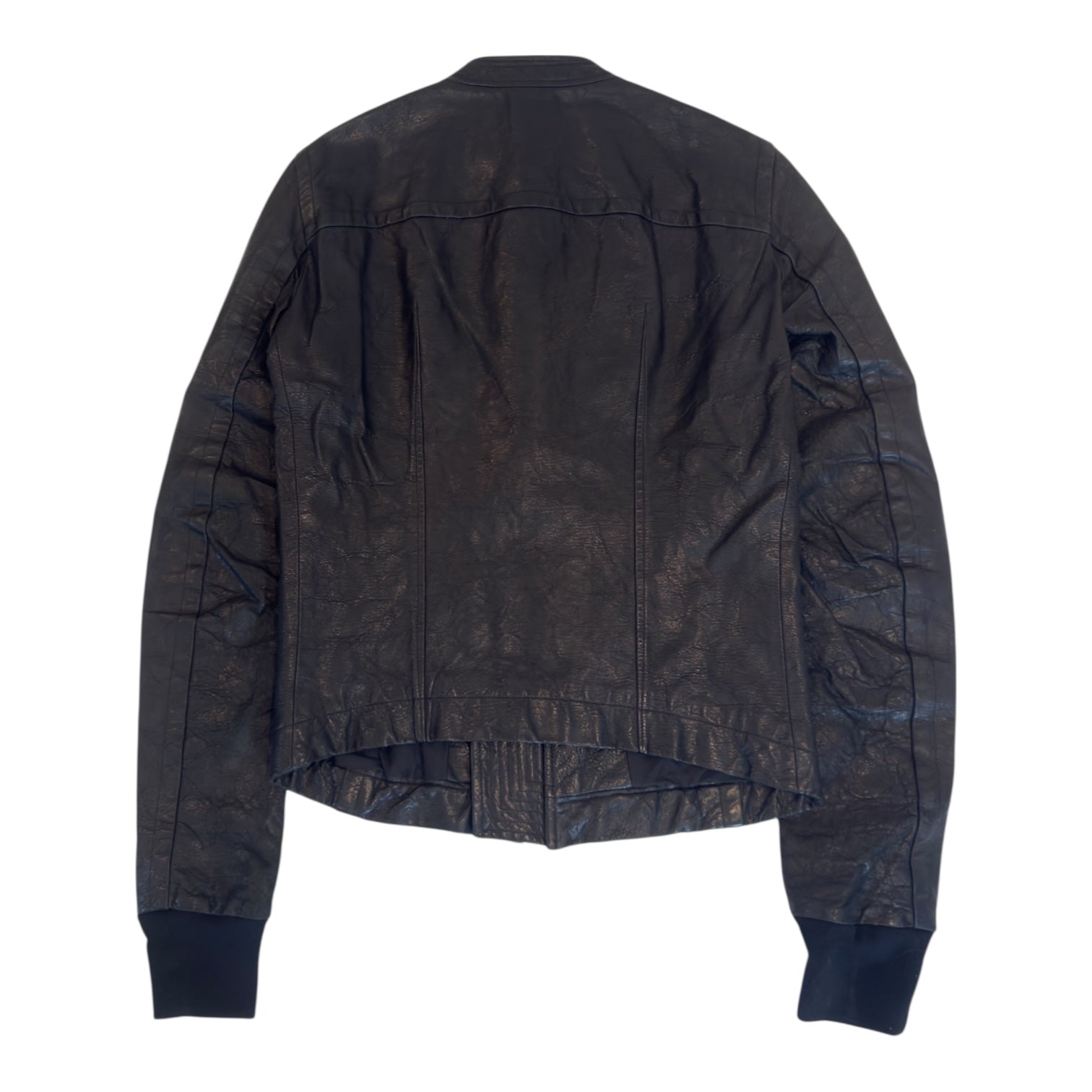 Rick Owens Autumn 2010 ‘Gleam’ Cafe Racer in Black Grained Lambskin, tagged size S fits M measures 20 pit to pit 17 shoulders 30 sleeves 27.5 front length 24.5 back length. In flawless condition