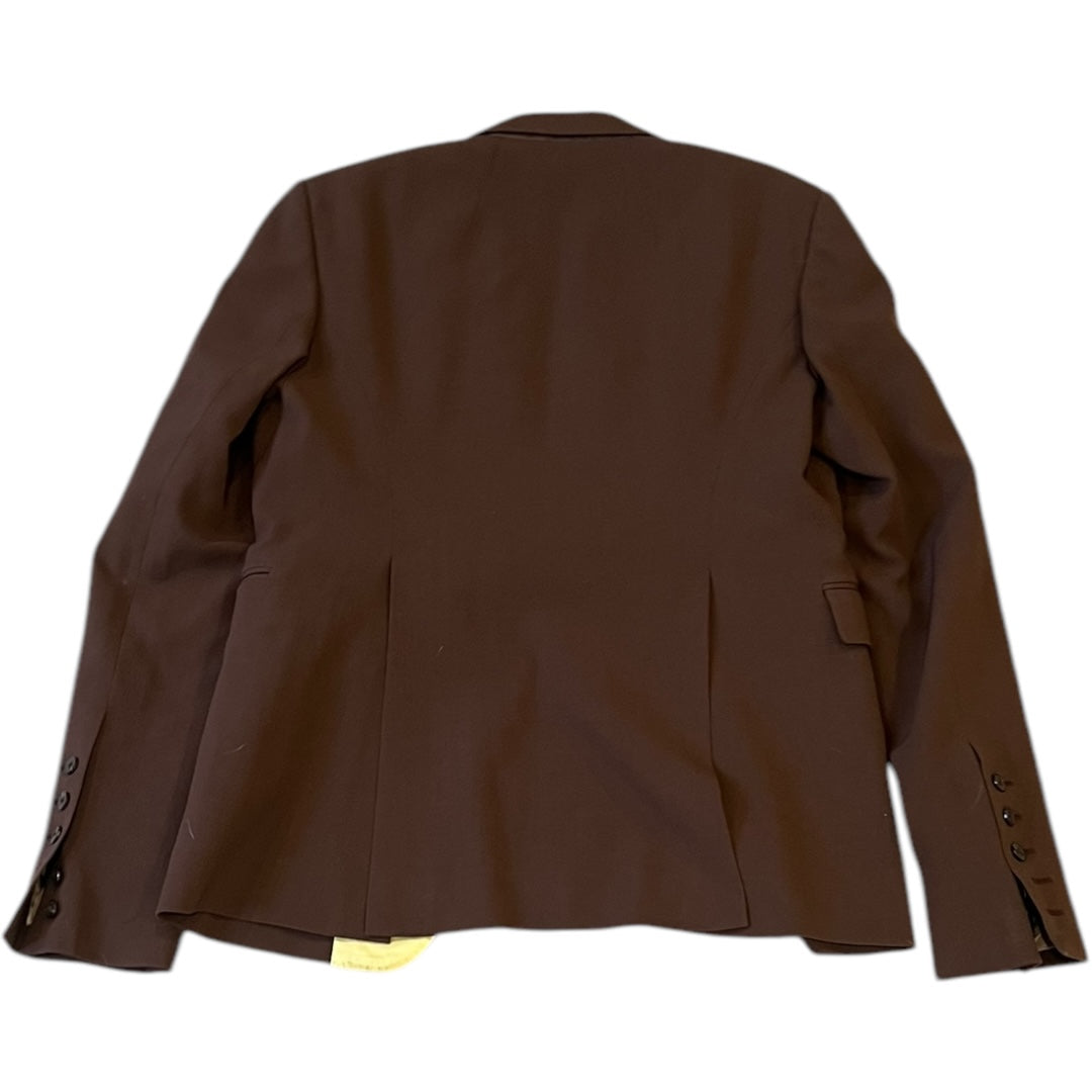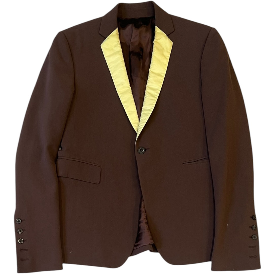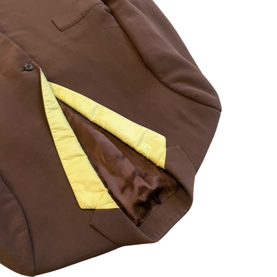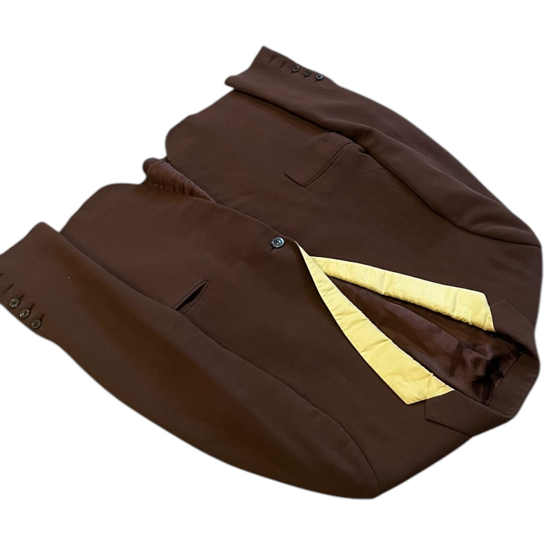 Rick Owens AW2018 ‘Sisyphus’ Stretch Twill One-Button blazer with light polyamide lapels. A rare combination of Chocolate brown and a soft but electrifying green, the first on elegant stretch twill and the latter on an eye catching light polyamide, creating a beautiful contrast effect. Size 50, minor marking to cuffs and collar. Pit to pit 19 shoulders 17 length 27 sleeves 29