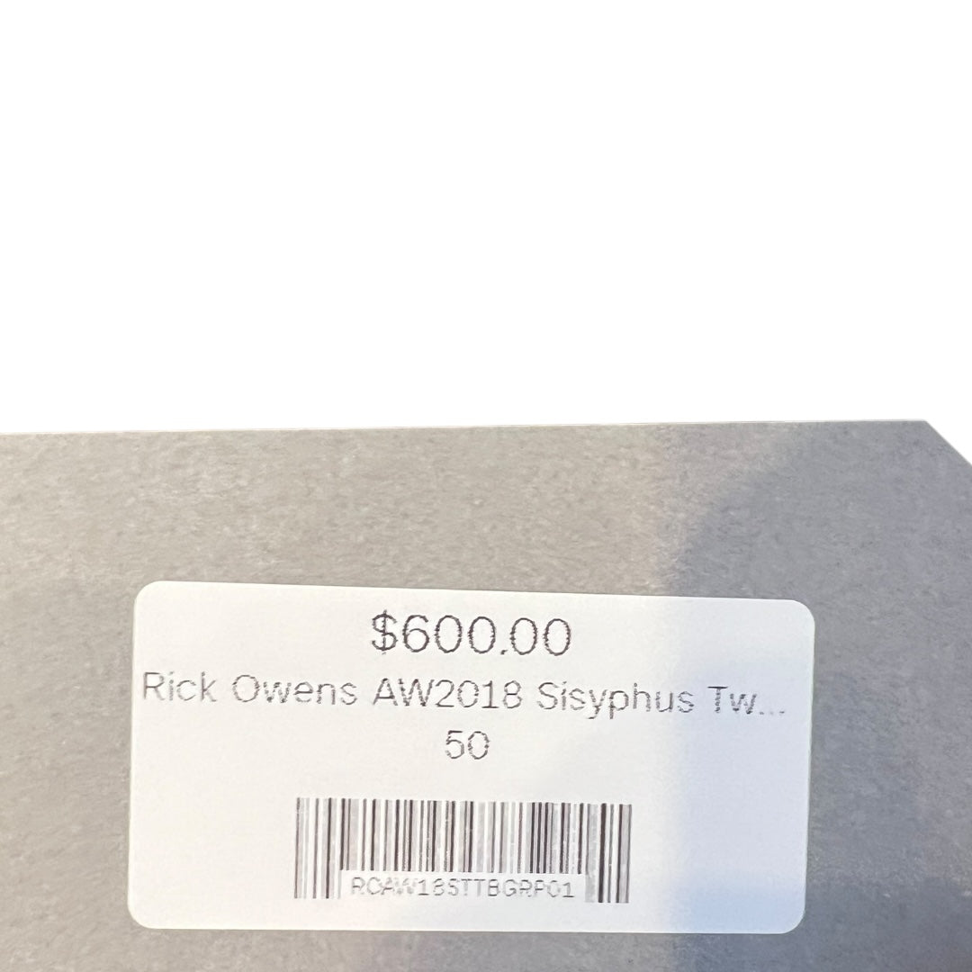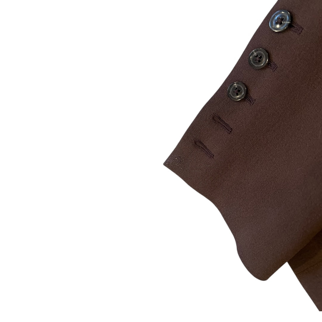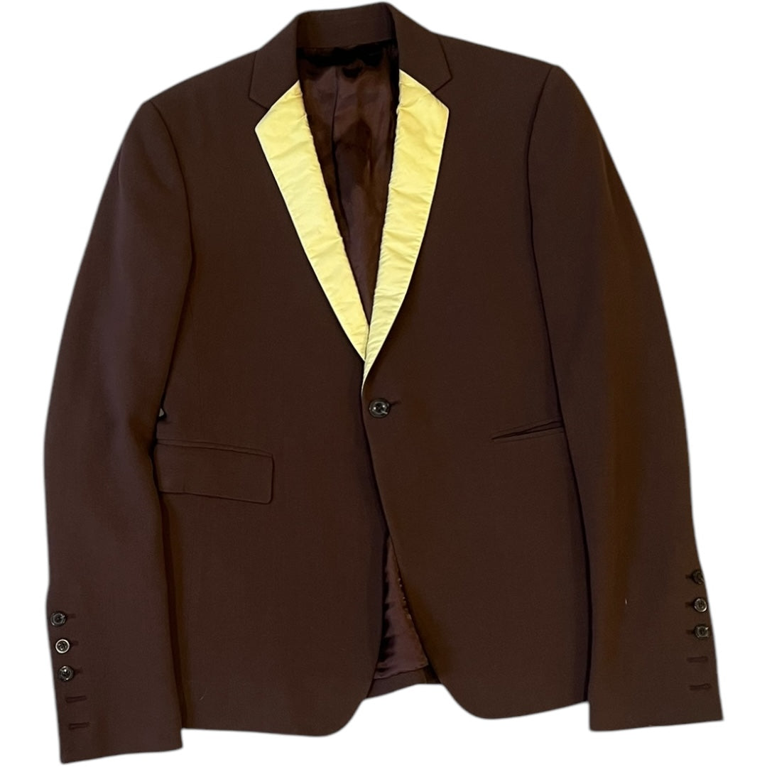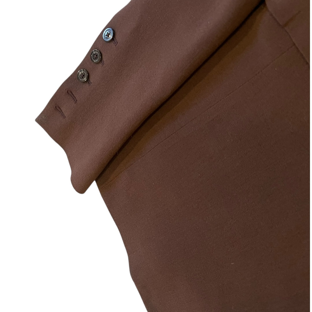 Rick Owens AW2018 ‘Sisyphus’ Stretch Twill One-Button blazer with light polyamide lapels. A rare combination of Chocolate brown and a soft but electrifying green, the first on elegant stretch twill and the latter on an eye catching light polyamide, creating a beautiful contrast effect. Size 50, minor marking to cuffs and collar. Pit to pit 19 shoulders 17 length 27 sleeves 29