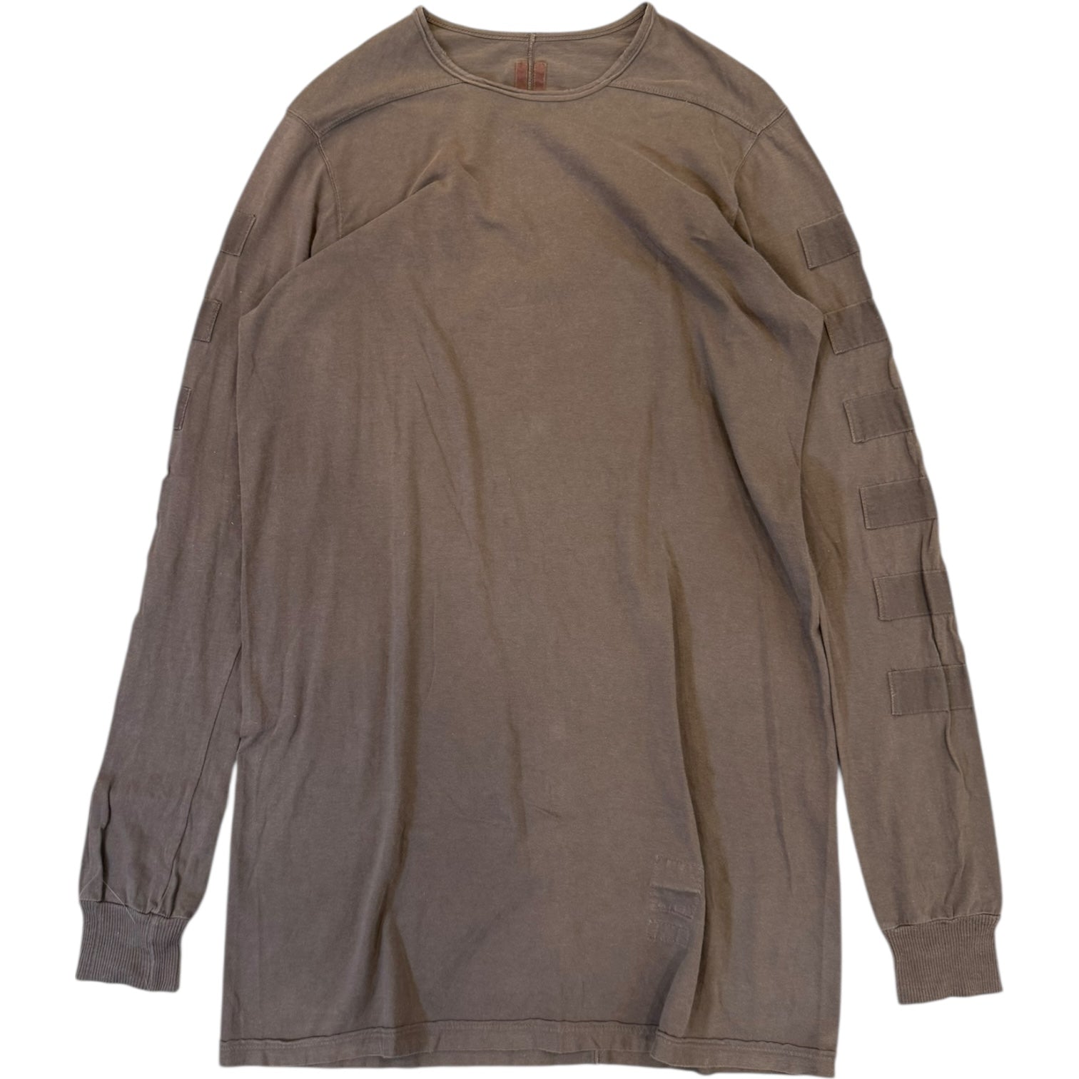 Rick Owens DRKSHDW (2008) Patched Level Longsleeve Tee in DNA Dust. Features woven cotton patches on sleeves and Rick Owens signature length, meant to stack at the waist. tagged S fits oversized, measures 20 pit to pit 16.75 shoulders 30.5 sleeves 33 length. In good used condition with no flaws.