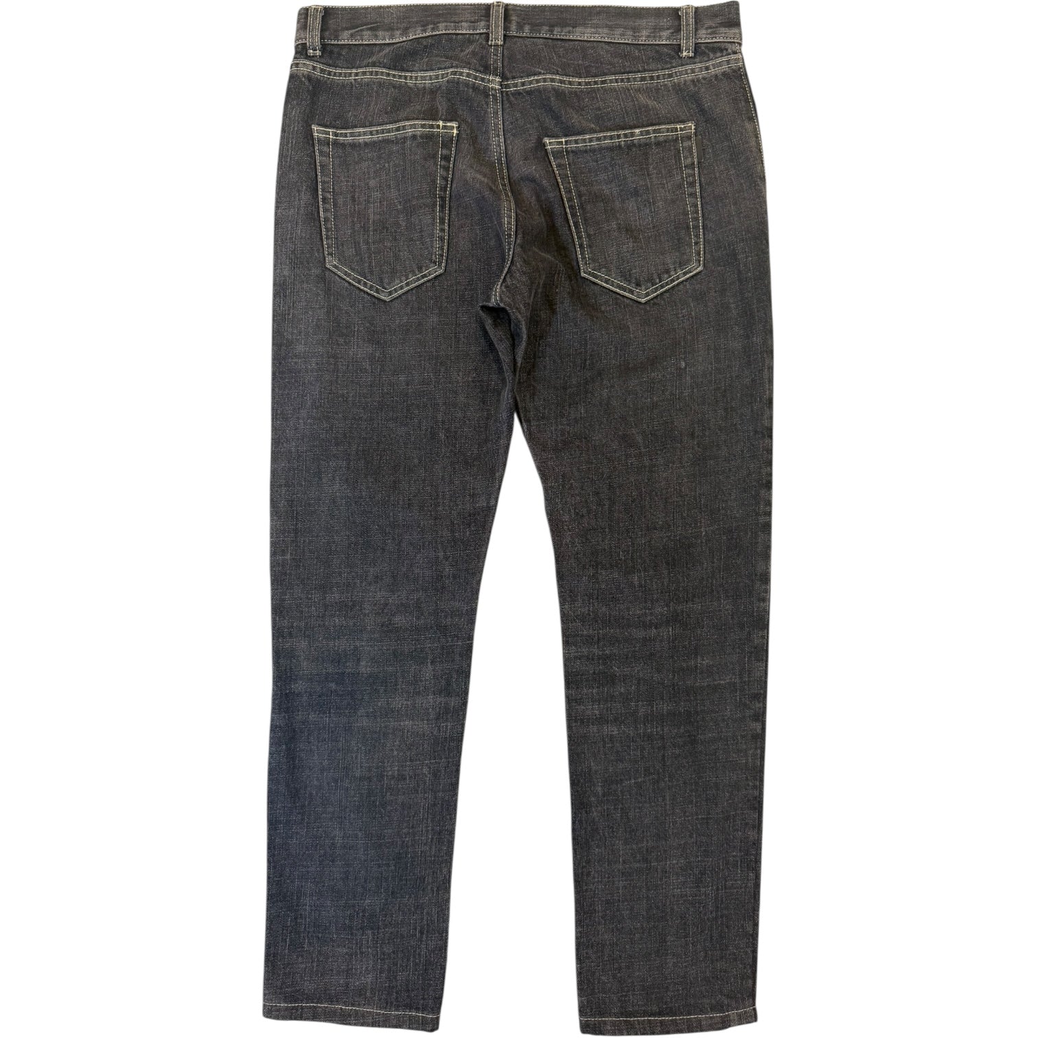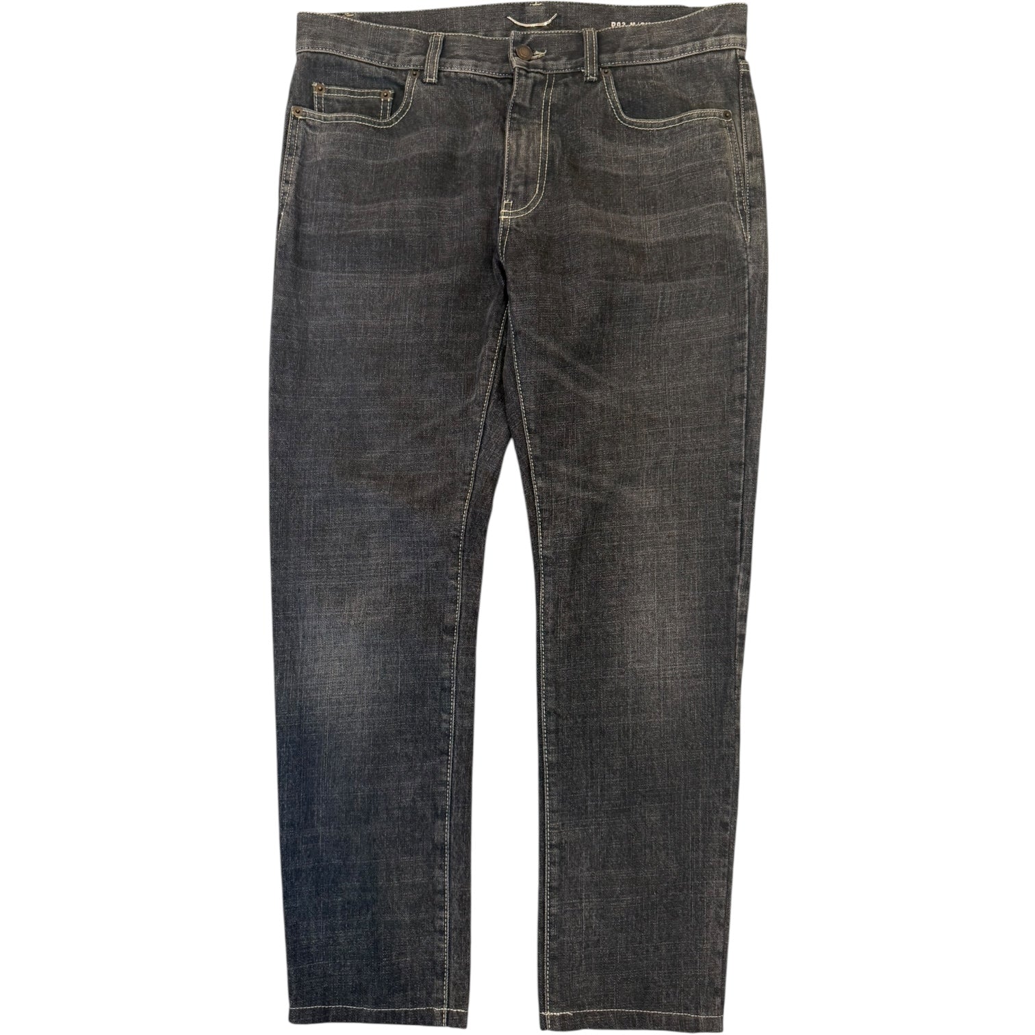 Saint Laurent Paris 2018 by Anthony Vaccarello Contrast-Thread Washed Black Denim tagged size 31 waist 33 rise 10 back rise 13 inseam 28 leg opening 6.5. Shrunken leather tag no other flaws