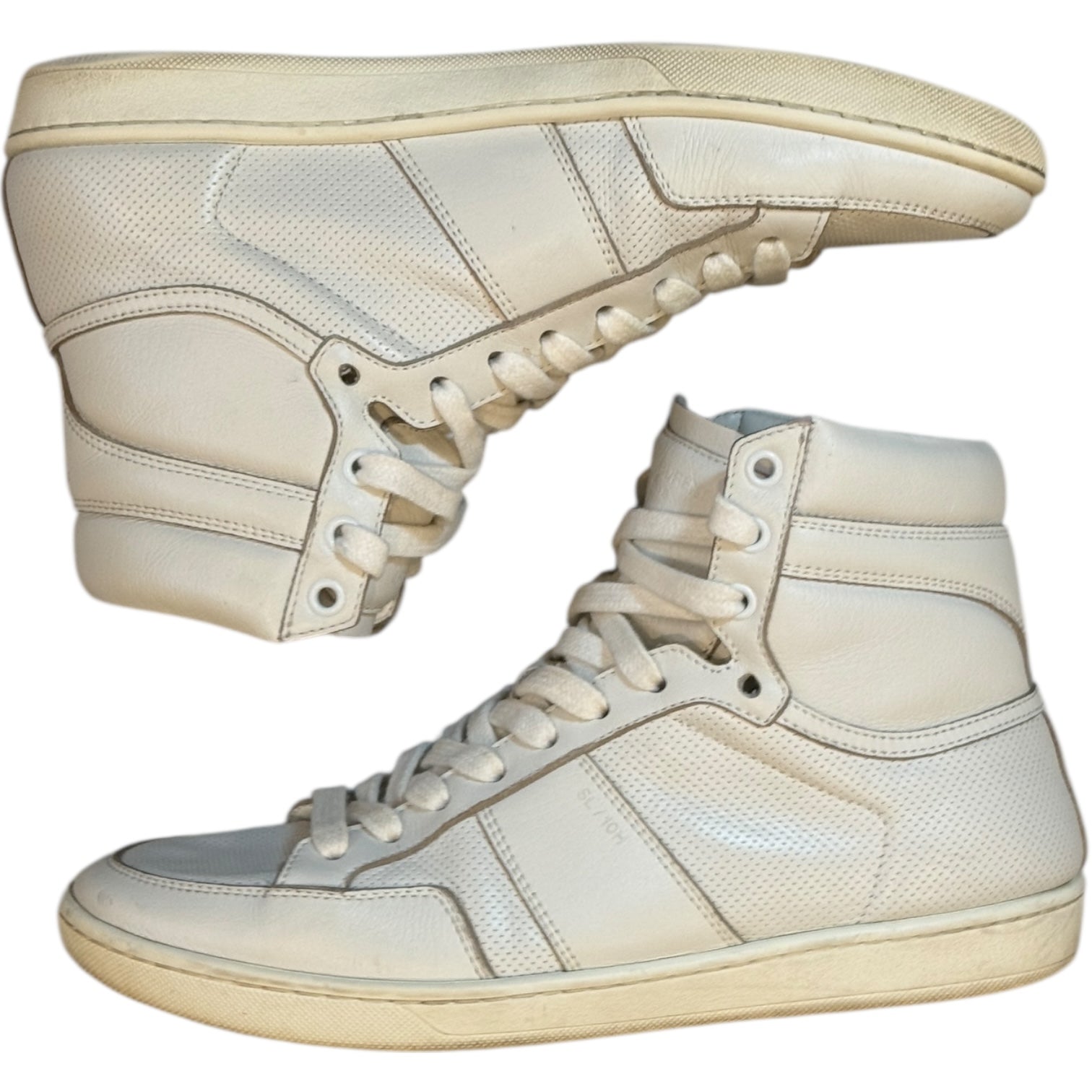 Saint Laurent SL/10H White Perforated Calfskin High Top Sneaker, tag size 40 fits US7.5-8.5. In exceptional used condition with faint signs of wear on sole and laces.