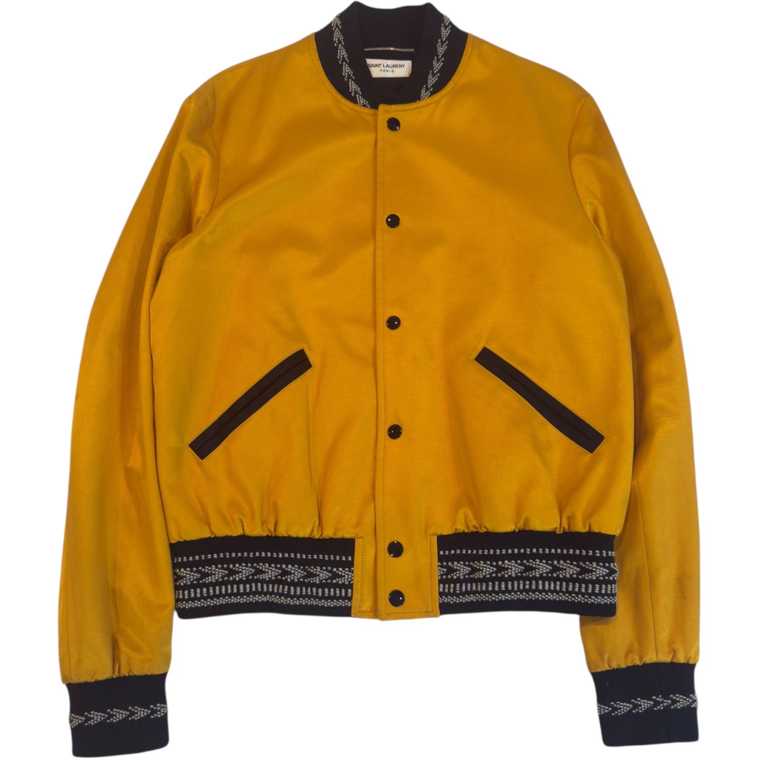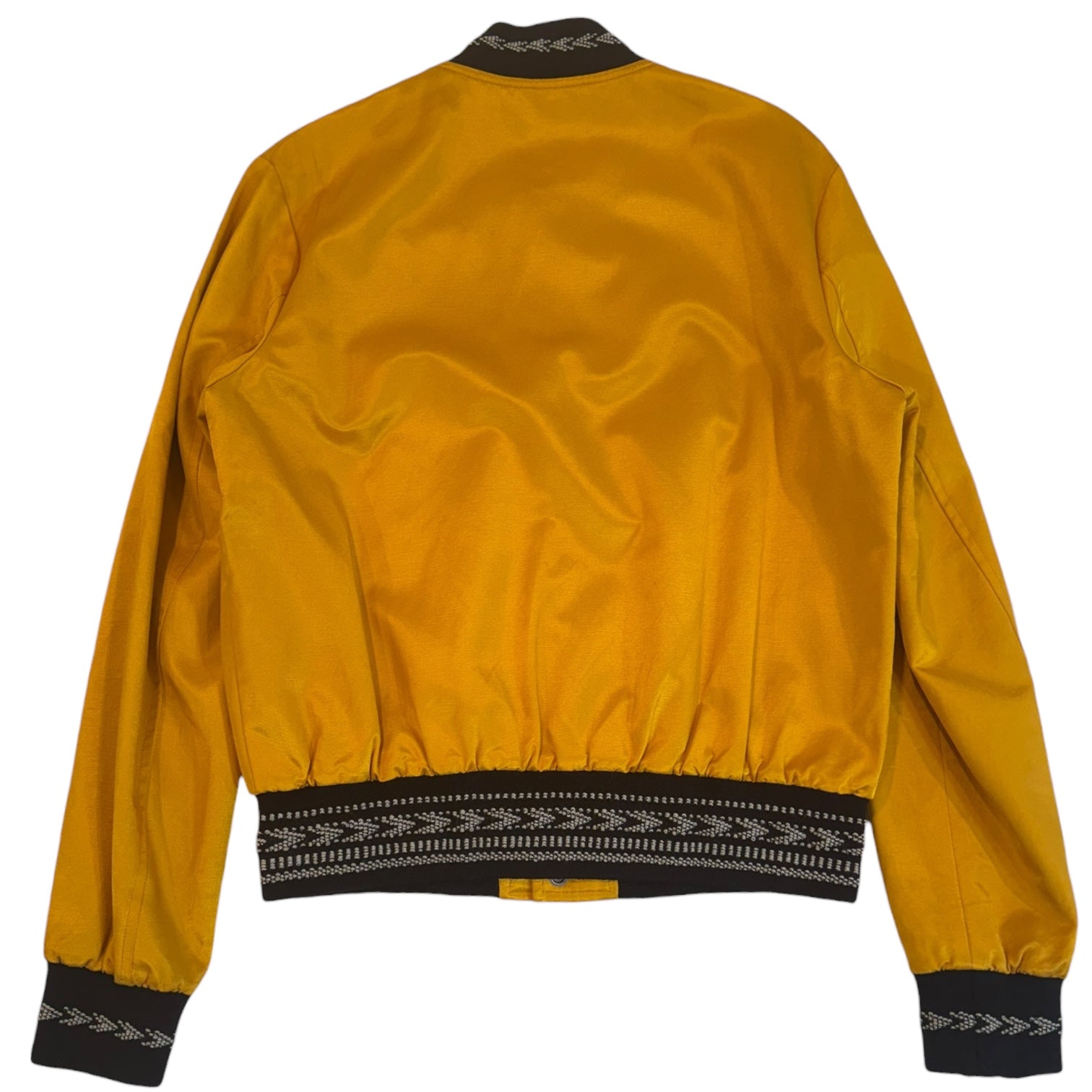 Saint Laurent Paris Ikat Bomber, tagged size 50/L fits slightly slim, measures 21 pit to pit 17.5 shoulders 26 sleeves 25 length. Cotton blend outer with a silky feel and slight shine, fully lined with a raised textured woven at the cuffs, hem and neck. In good condition with some very slight signs of wear, no noticeable flaws.