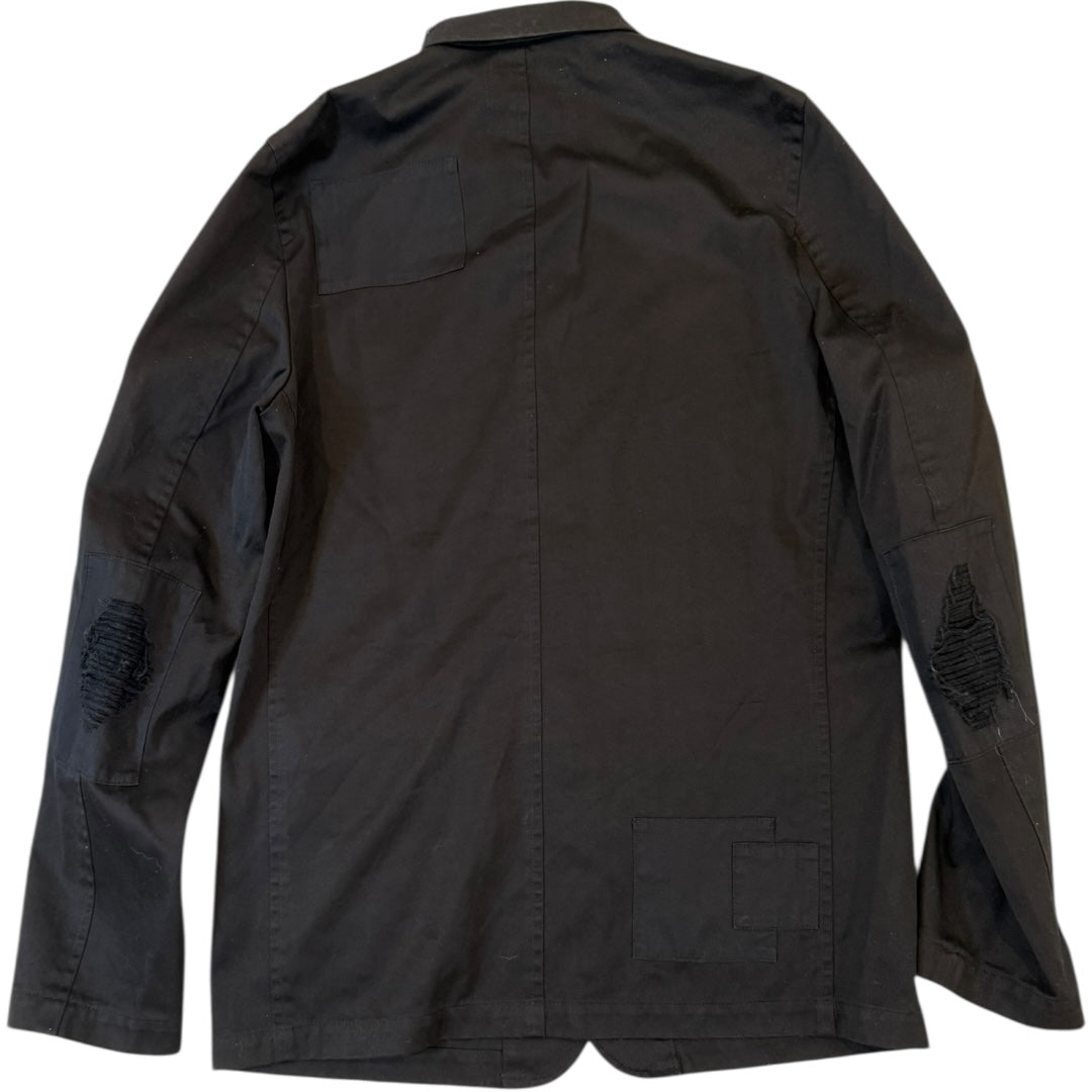 Undercover Spring Summer 2001 ‘Chaotic Discord’ Distressed Patched and Repaired Three-Button Jacket in Black, tagged L measures 20.75 pit to pit 19.25 shoulders 27.5 length 27 sleeves. In perfect condition for age, no flaws.