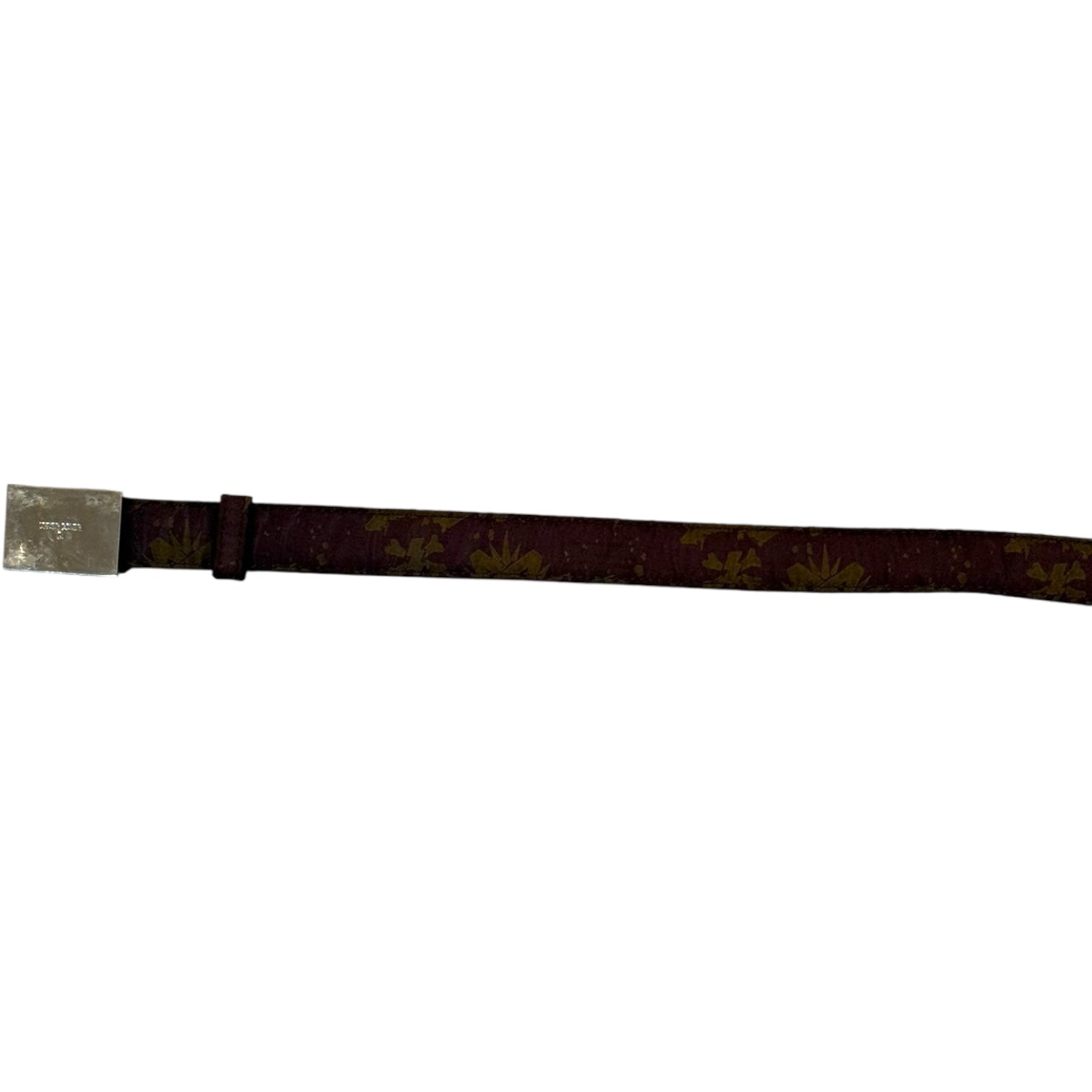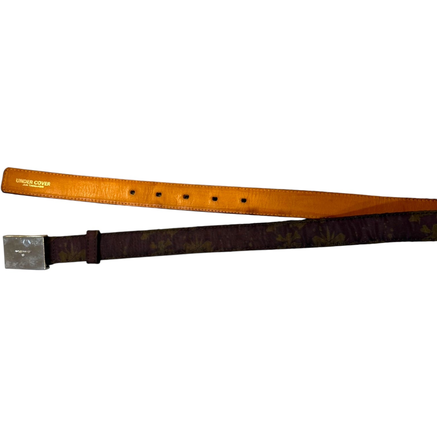 Undercover x Futura Spring 2001 ‘Chaotic Discord’ Graffiti ‘Louis Vuitton’ Rip Belt in Brown Graphic Nylon with Calfskin Backing. Fits waists 30 to 34 inches