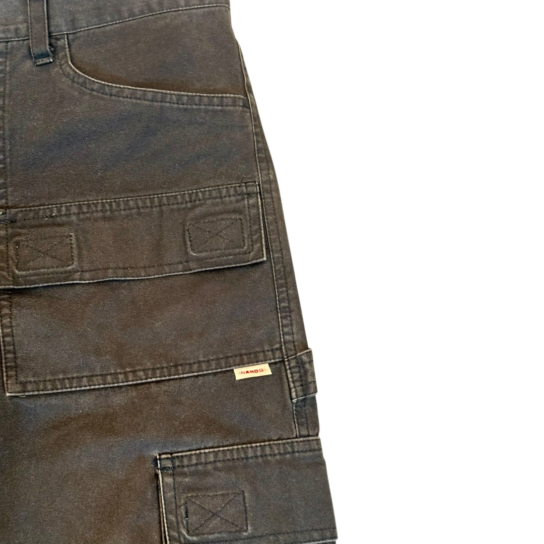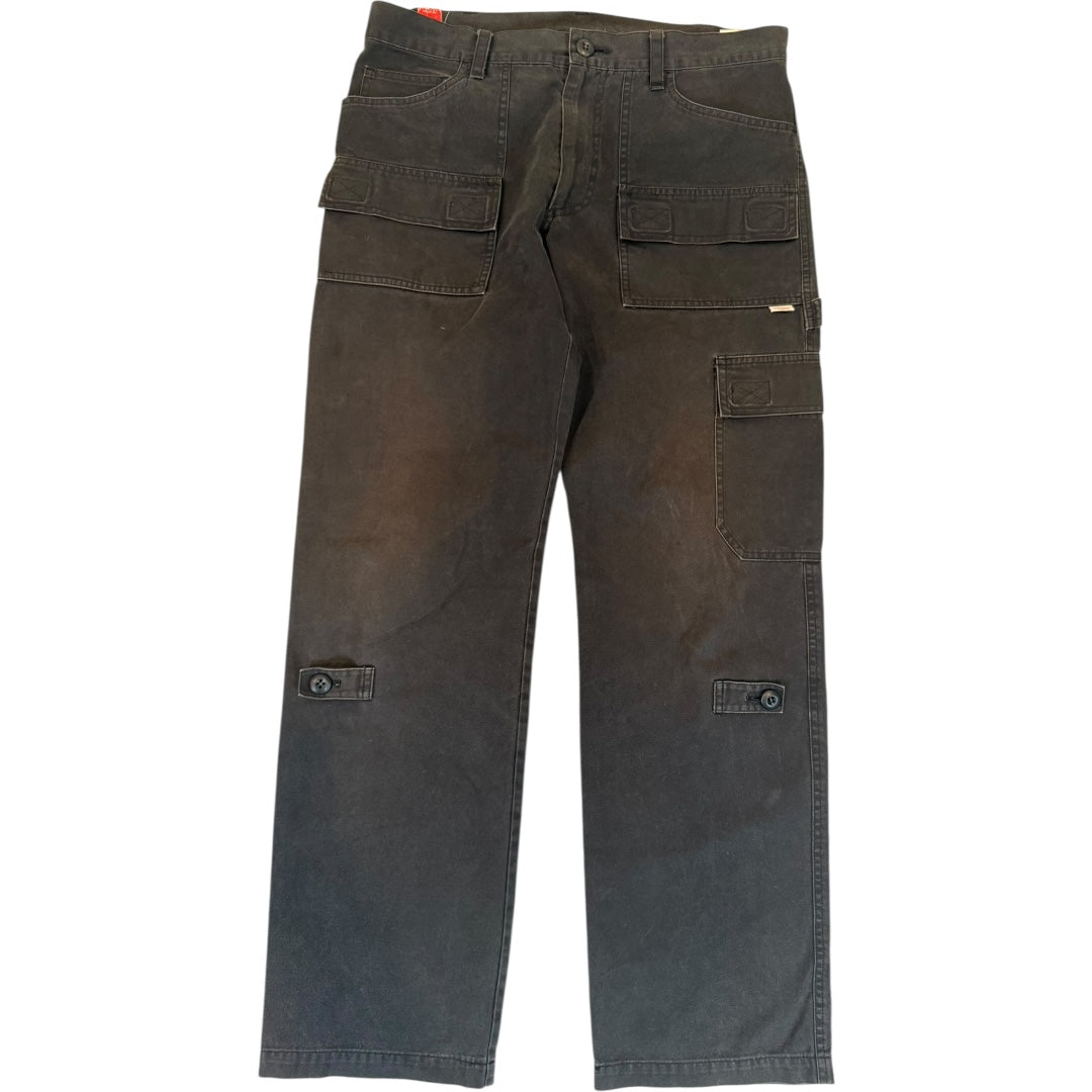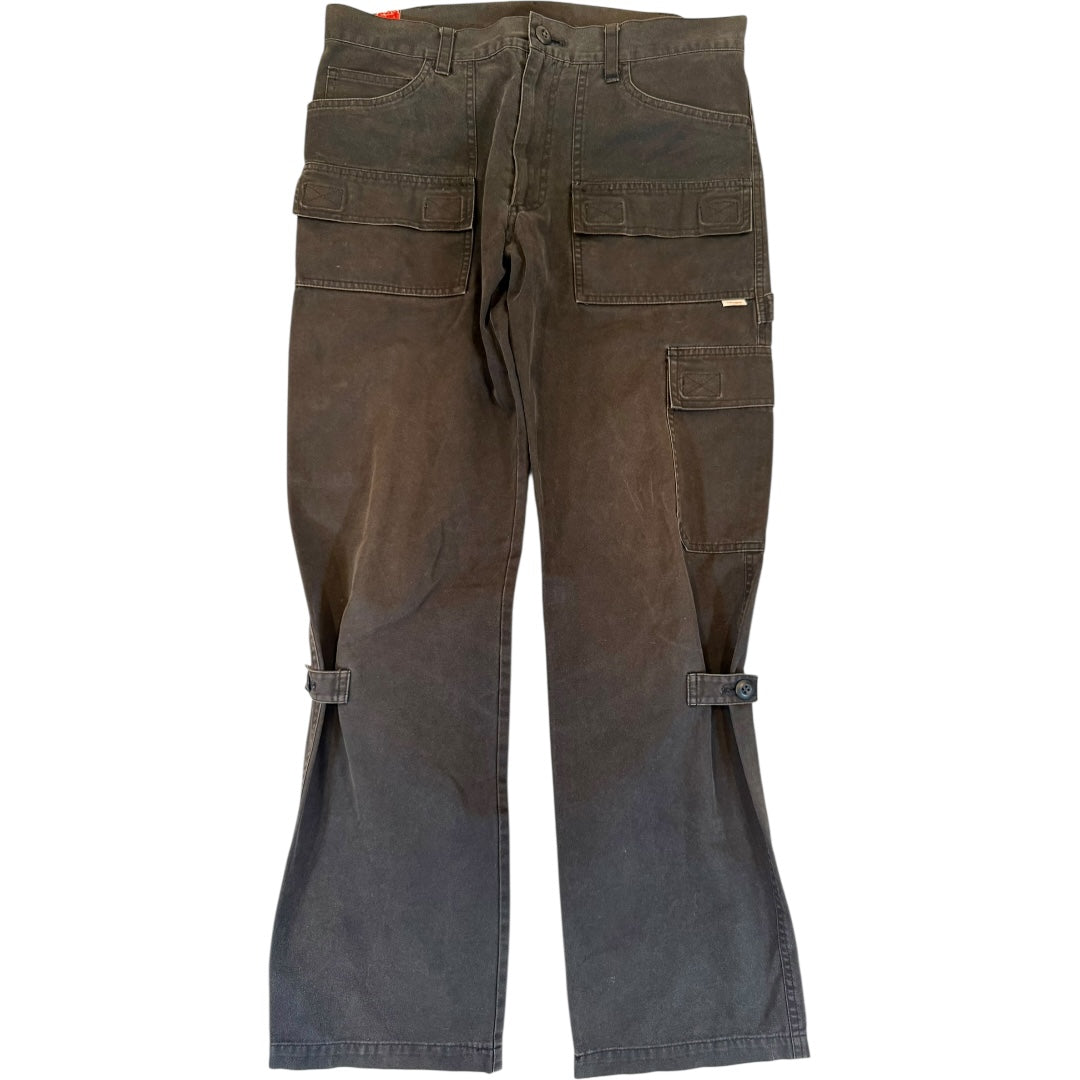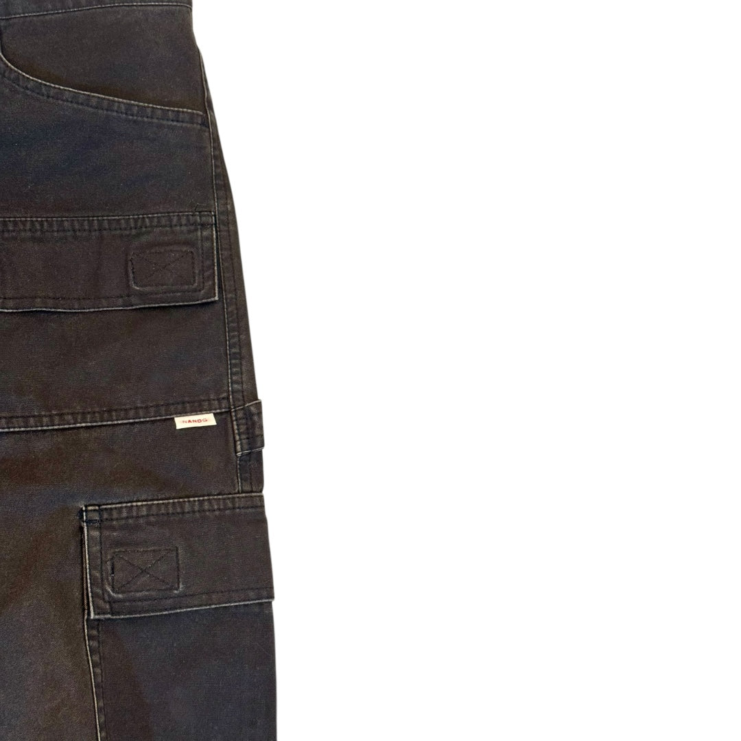 Undercover x NGAP SS2000 Washed Black Bondage Cargo, used condition with no flaws except for small tear at back pocket visible in photos. Size L measures 33 waist 11 rise 13.5 back rise 30.25 inseam 8.25 leg opening