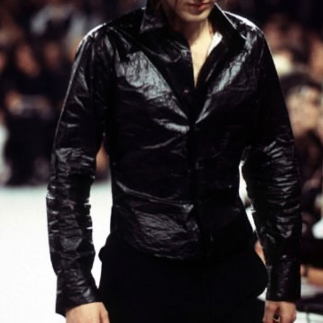 Ann Demeulemeester Spring 1996 Runway Polyethylene Overshirt tagged size M measures 21.5 pit to pit 17.5 shoulders 29 length 29 sleeves. In flawless condition.