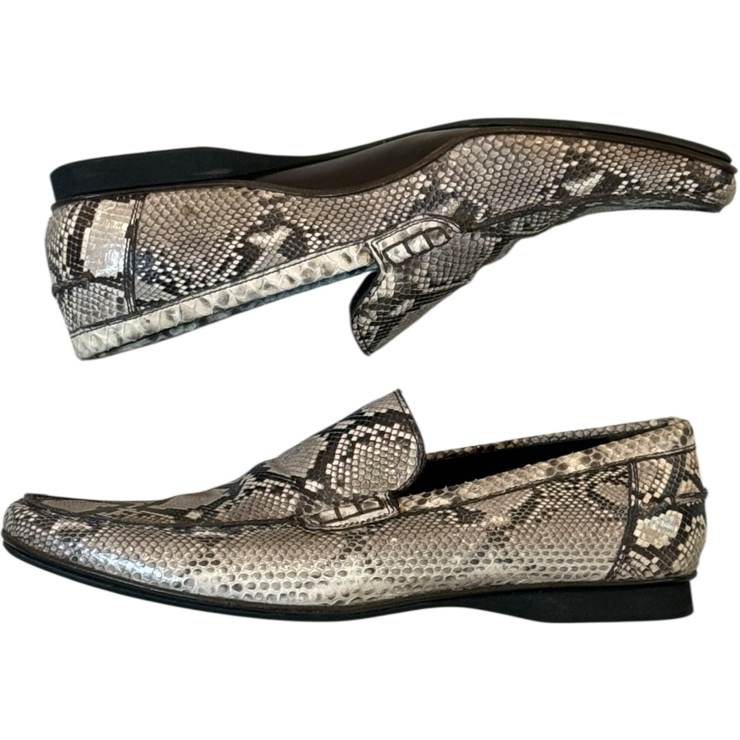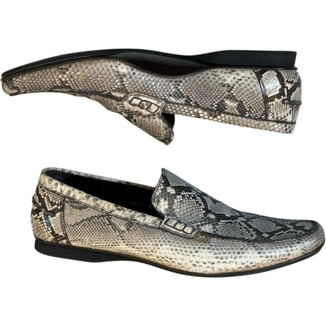 Prada Snakeskin Loafers in Grey / Black, tag size UK7.5 /US8.5 fit US8-9. In great shape with minor discoloration to real snakeskin material and no damage to insole. Reach out for assistance with shipping restrictions.