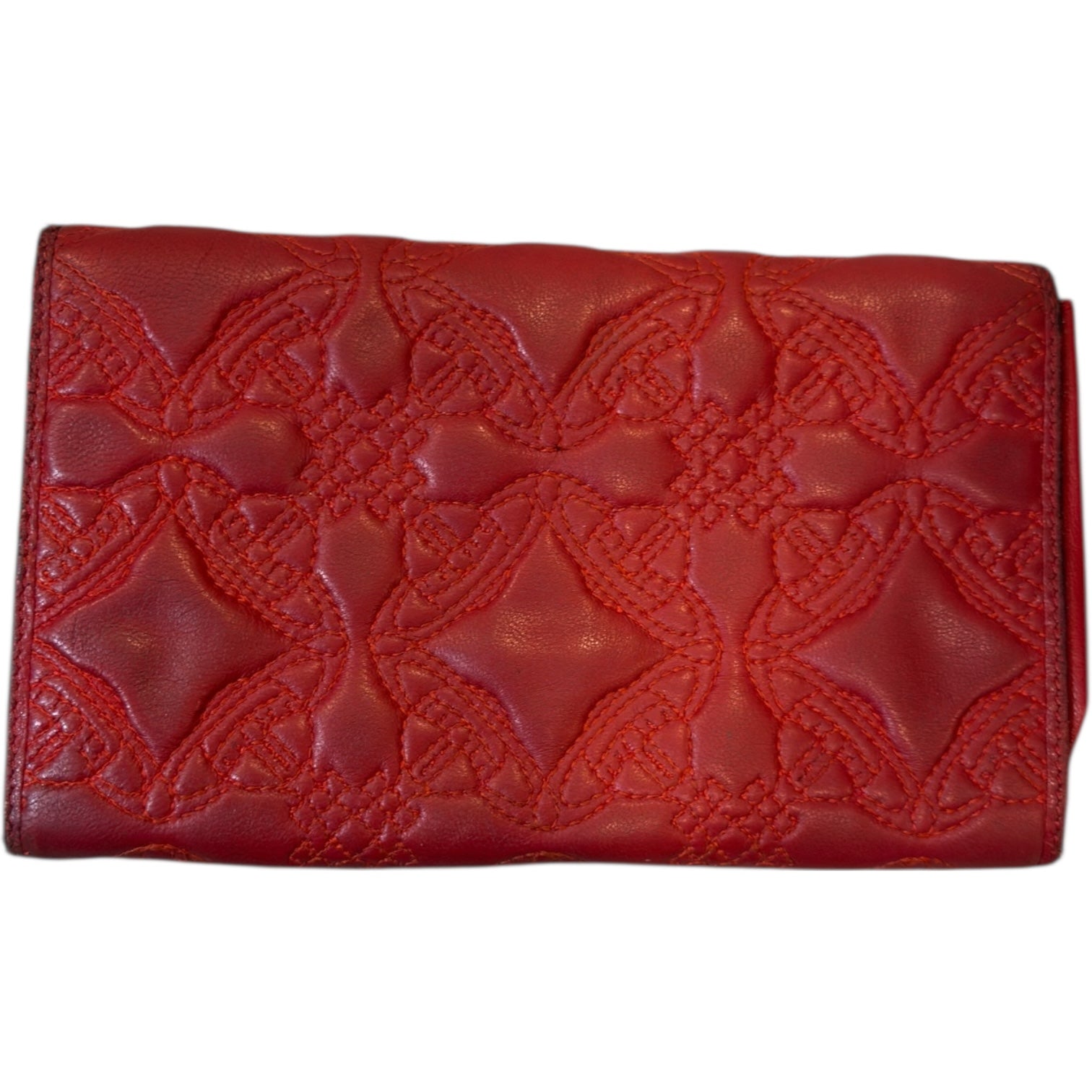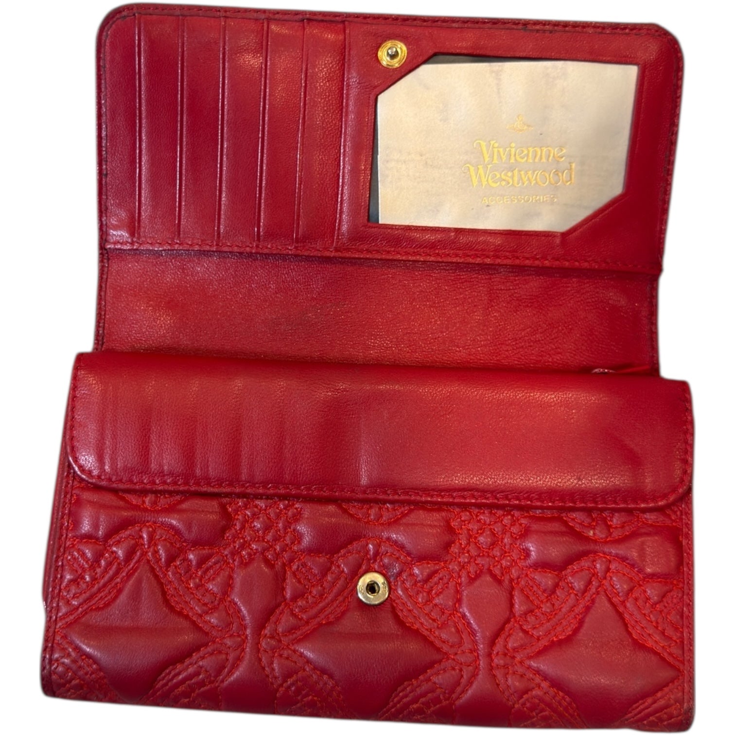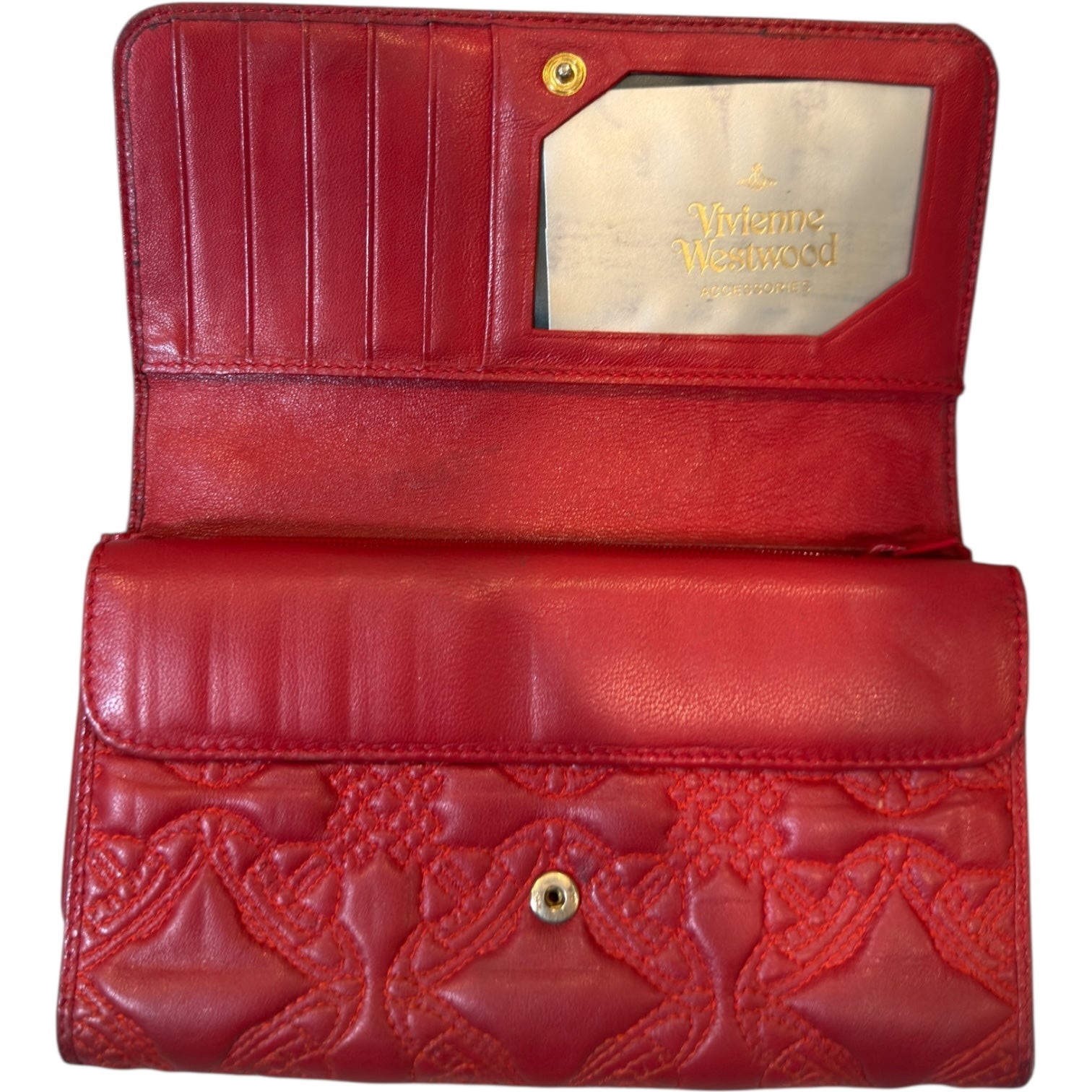 Vivienne Westwood Embroidered Leather Wallet in red, brand new condition with box. L-zip closure with many different compartments.