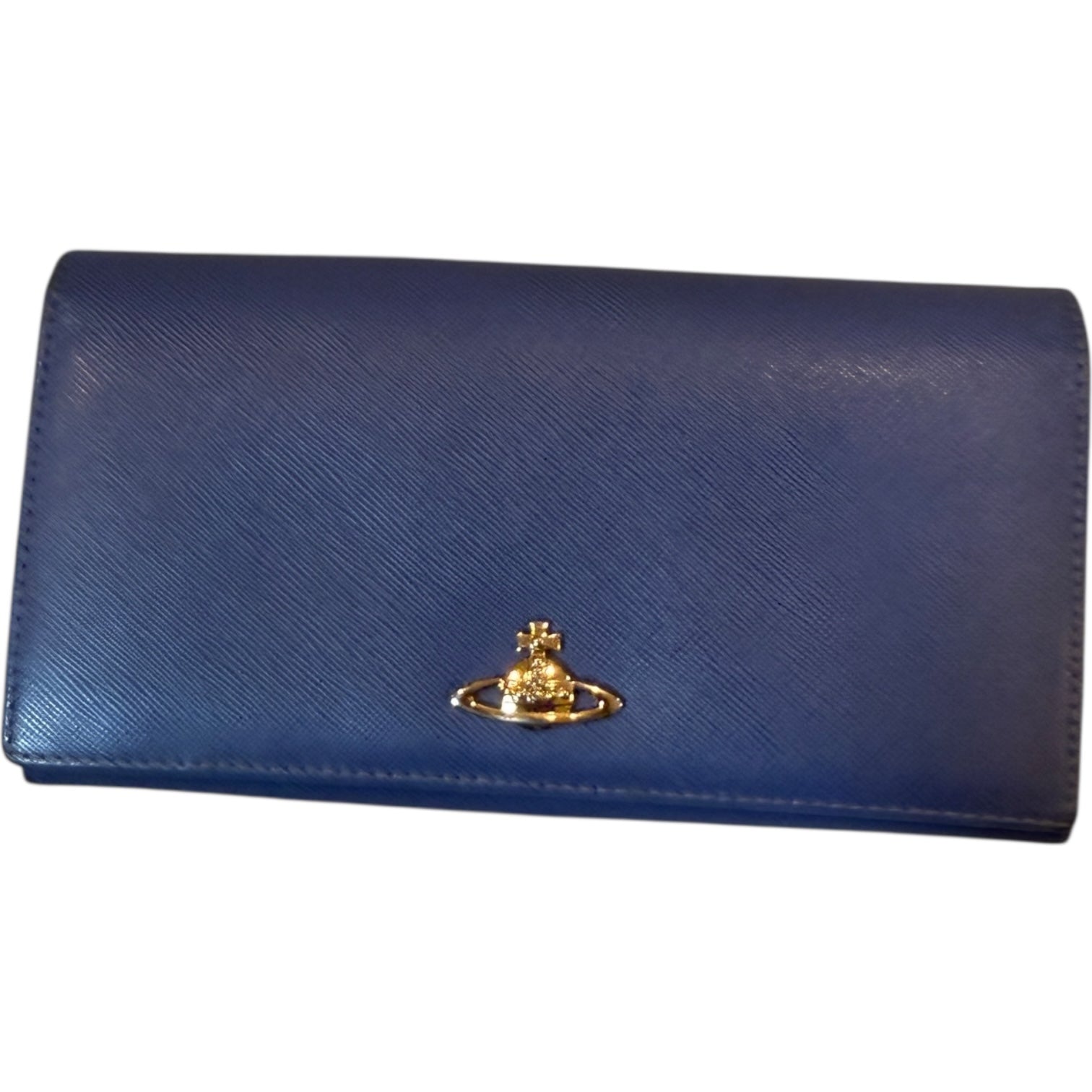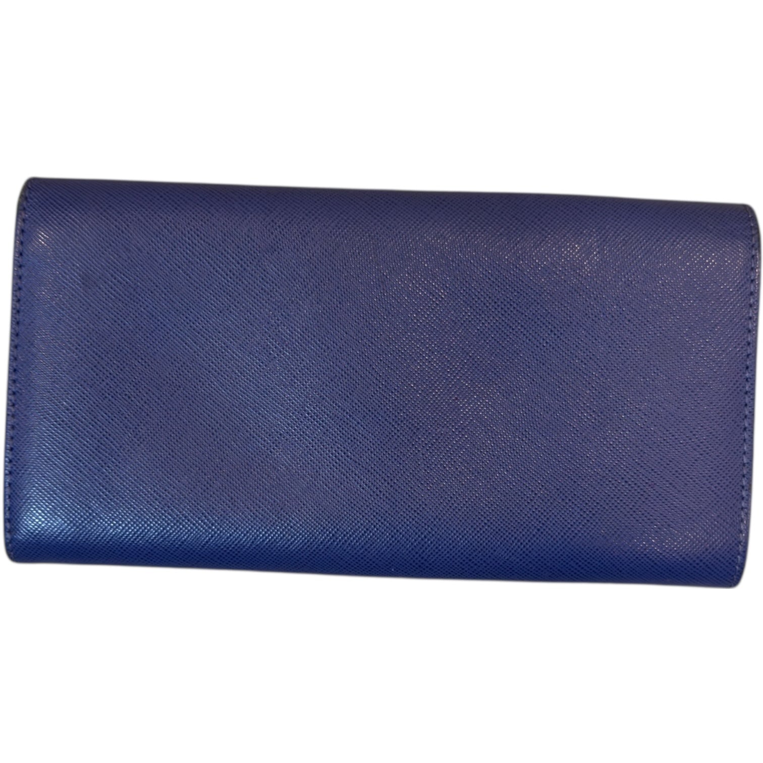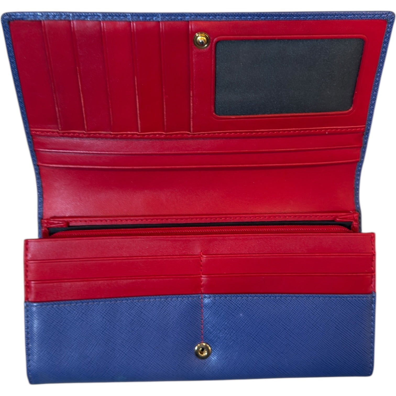 Vivienne Westwood Blue and Red Calfskin Long Wallet with Orb motif Snap Closure. In perfect condition with no flaws.