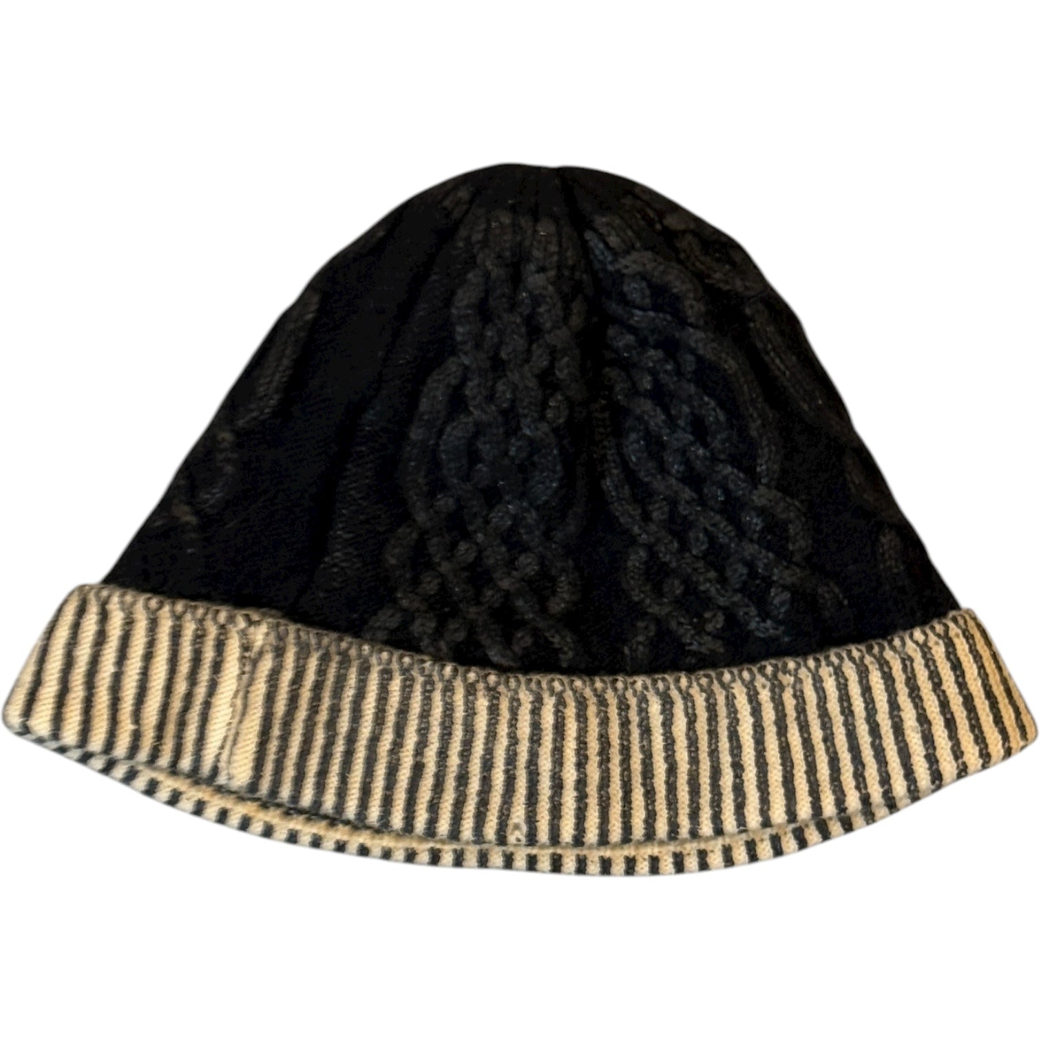 Vivienne Westwood Beanie in Black Waxed Wool Knit, Orb Logo at front. Comfortable fabric with a specialty treated black wax processing. One size fits all design with some stretch.