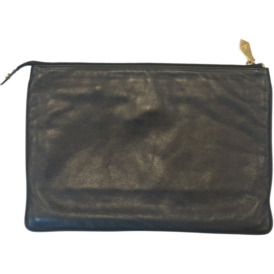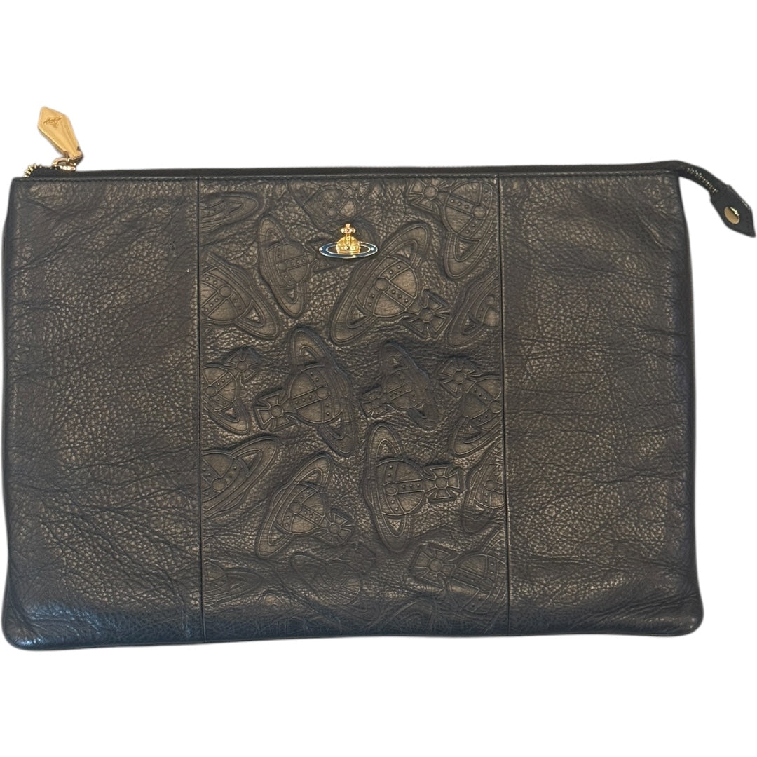 Vivienne Westwood Embossed Calfskin Clutch Bag in Black Cowhide, nearly new condition with two internal pouches and gold toned zipper.
