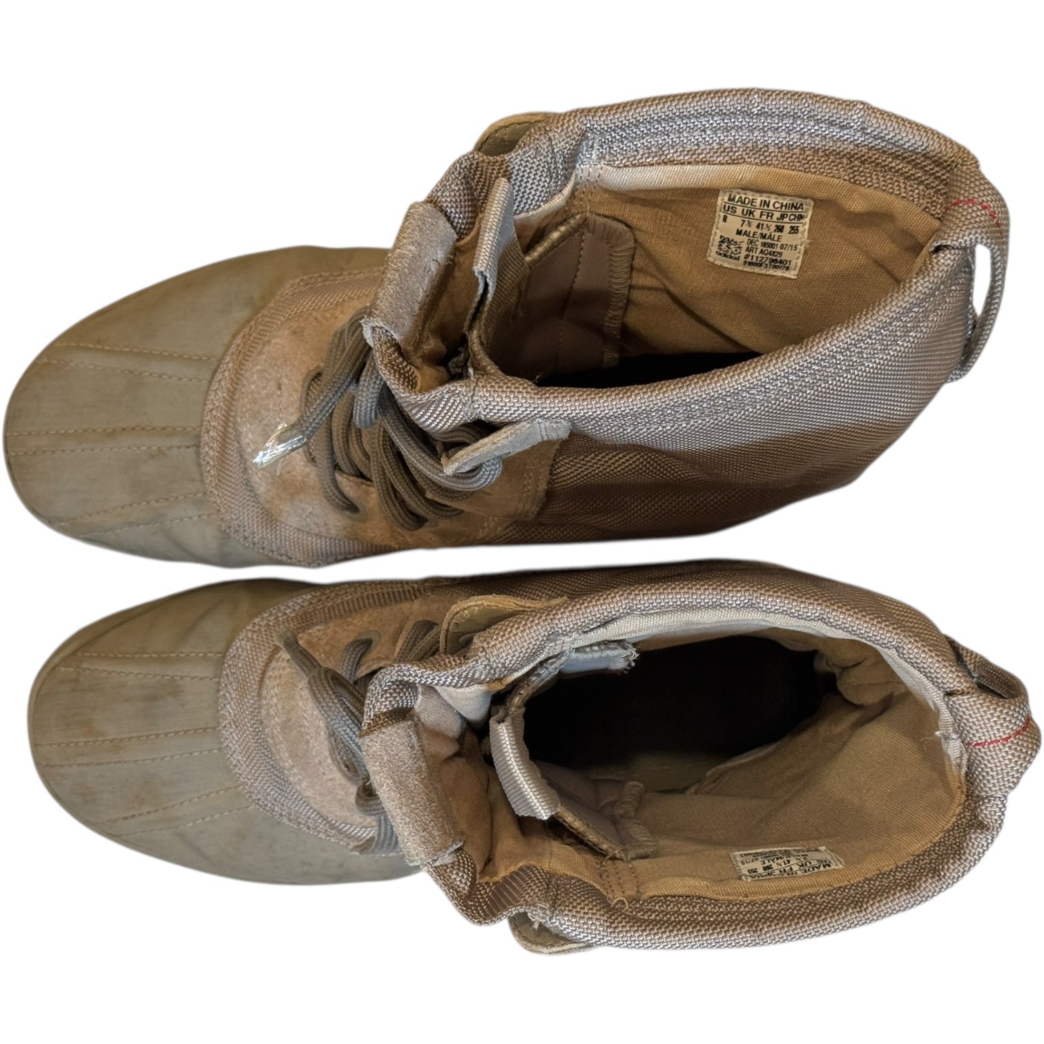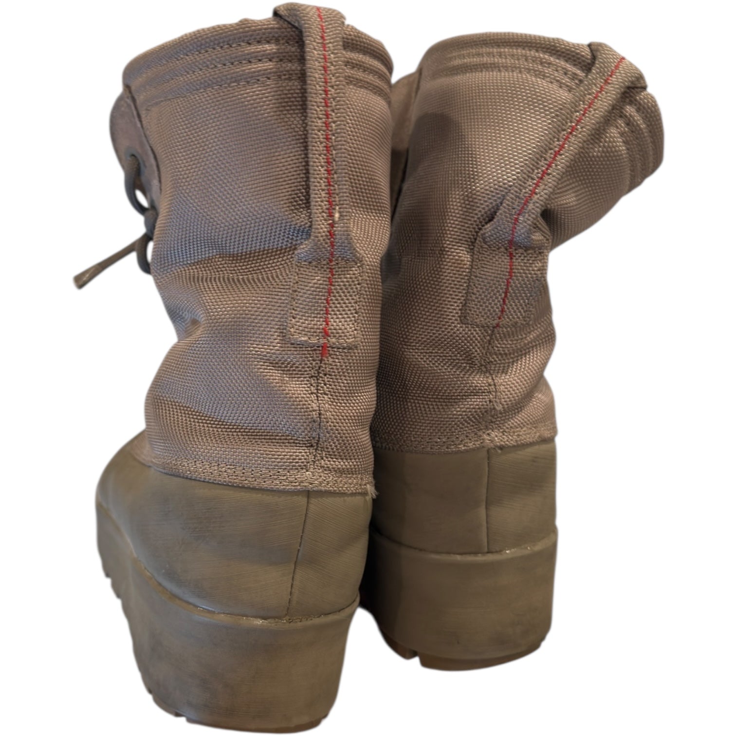 Yzy Season 1 Boots in Peyote / Tan Colorway tagged US men’s 8 fits 8-9. Waterproof rubber boot with ballistic nylon upper and a neoprene inner tongue to keep the foot comfortable. In used condition with minor glue marks from repair as well as dirt, reflected in price.