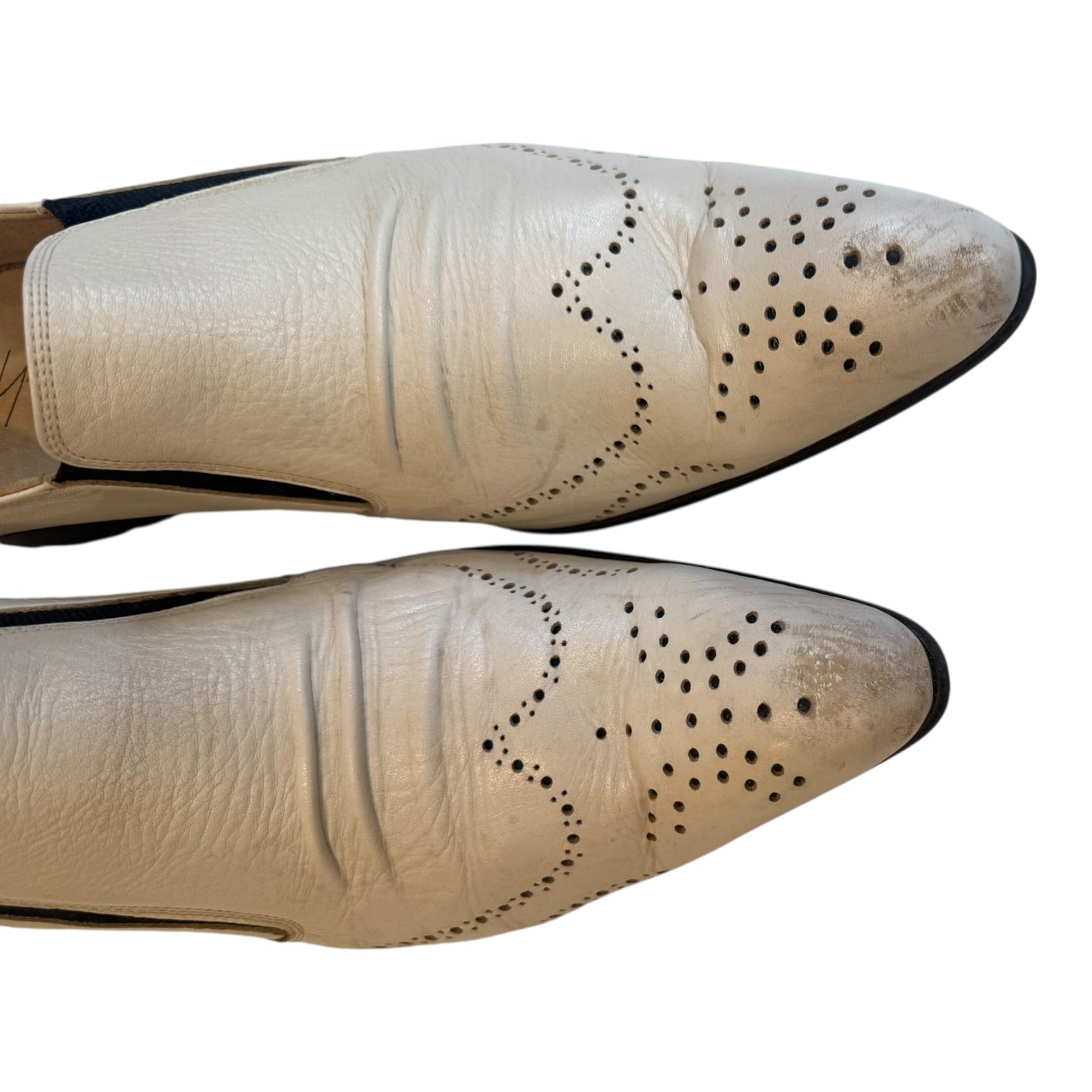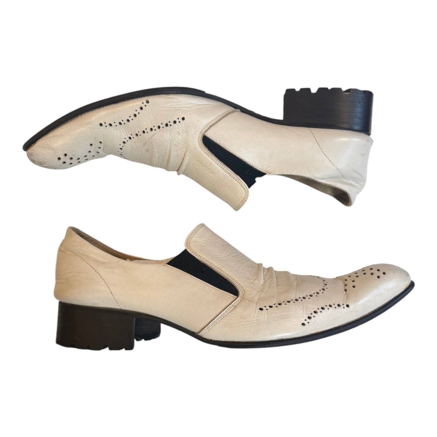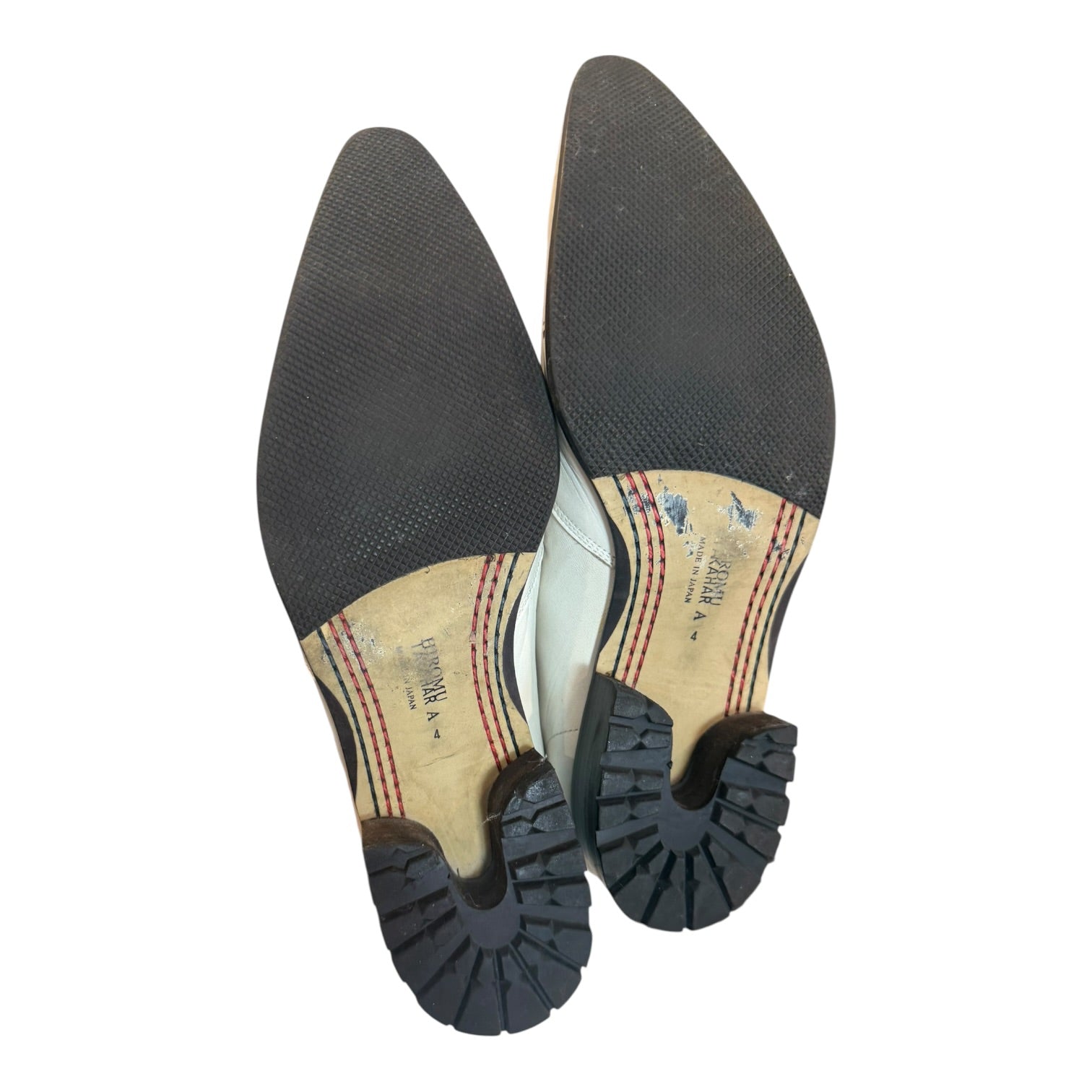 Yohji Yamamoto x Hiromu Takahara Autumn 2006 Leather Point Toe Shoe in White, grail size 4 fits US10.5-11.5. This rare collaboration from Yohji Yamamoto’s Baroque period features a design from the artisanal Japanese shoe maker Hiromu Takahara, known best for his hooved heels and ready to wear line Roen.