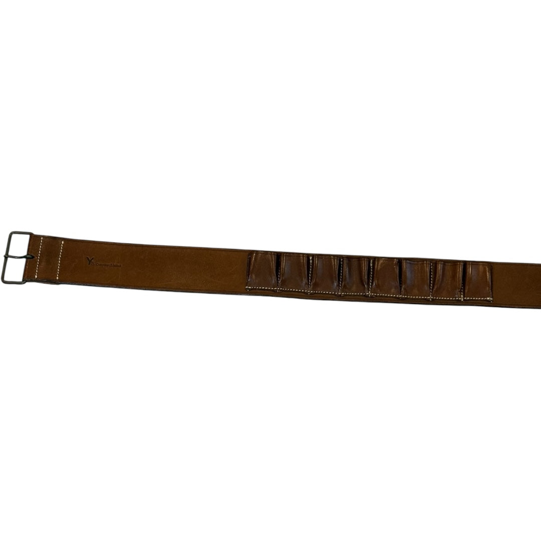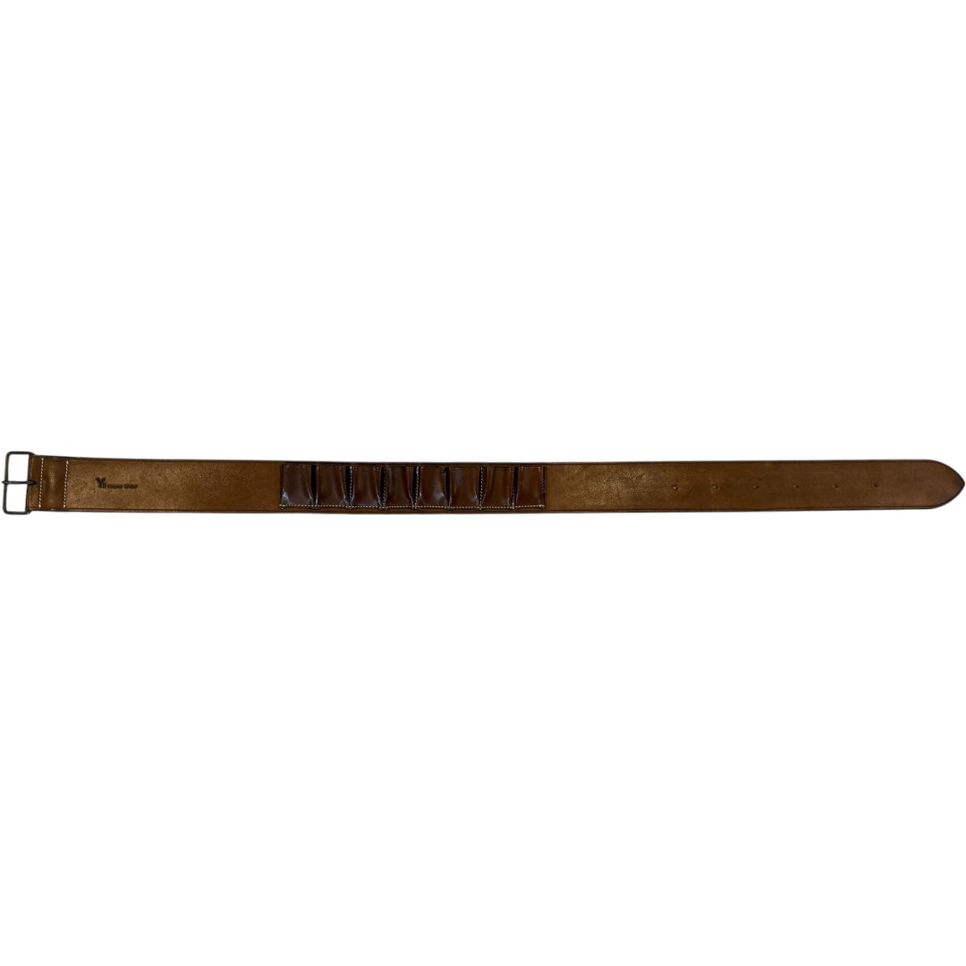 Yohji Yamamoto Y’s Hunting Belt in Brown Cowhide Leather, featuring shotgun shell ammo storage spaces inspired by traditional hunting gear. best for waist 26-30 inches, no flaws. 1.75 inches height
