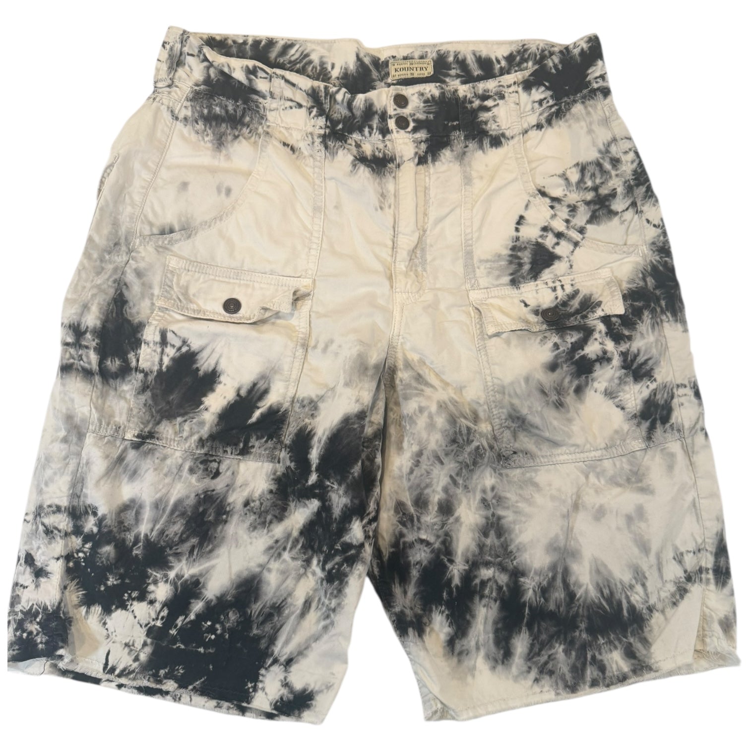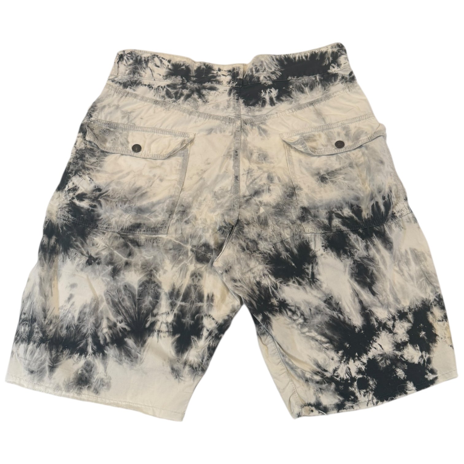 Kapital Kountry Bush Cargo Resist-Dyed Shorts in Black / White, tag size XL waist measures 32.5 rise 13 back rise 15.5 inseam 10.5 leg opening 10.5. In flawless condition