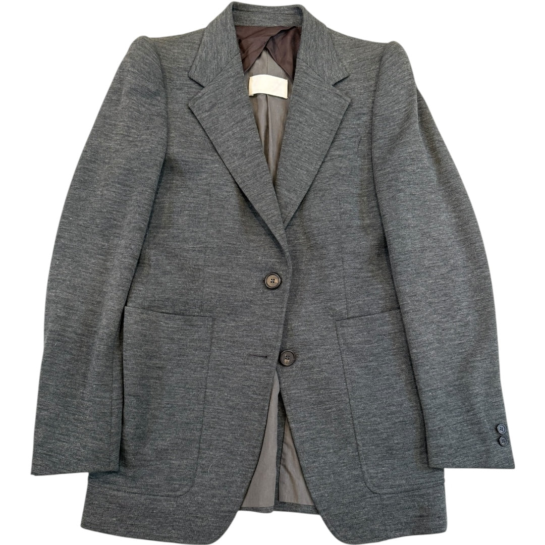Maison Martin Margiela Autumn 1996 Articulated Shoulder Two Button Jacket in Grey Melange Twill with silky lining. This extremely rare garment is tagged size 40, fitting like a women’s L-XL or a men’s S-Slim M, measuring 18.75 pit to pit 17.25 shoulders 28.75 sleeves 27.5 length